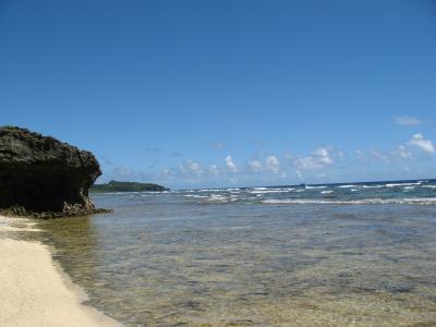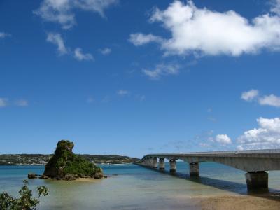 「古宇利ビーチ」は古宇利島の入口にあるビーチです。那覇から国道58号線を2時間ほど北上、県道110号線、125号線を通って屋我地島を渡り、“日本一長い無料で通行できる古宇利大橋”を渡ると、両サイドに白い砂浜が広がります。ビーチはそれほど広くはありませんが、海は遠浅で透明度も抜群でした。無料駐車場やシャワーや更衣室も整備されています。ビーチから眺める古宇利島と古宇利大橋、青い空と海のパノラマは絶景でした。