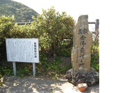 下甑島の“鹿島断崖”を見るために“藺落展望所”へ行ったときに、「念仏発祥碑」を拝見しました。その場所は、下甑島の北の玄関口、鹿島港フェリー桟橋より車で西に約5分、駐車場から山道を歩いて10分足らずのところにあります。藺落展望所遊歩道を登っていくと、その途中の断崖上に“念仏発祥の地”の碑がありました。ここは、江戸時代、薩摩藩により、一向宗の信仰が厳しく禁止されていた時代に、浄土真宗門徒たちが権力の目を逃れつつ信仰を守った地だそうです。“念仏発祥の地”の碑の向こう側には、門徒達が西方浄土を願ったであろう綺麗な海が広がっていました。