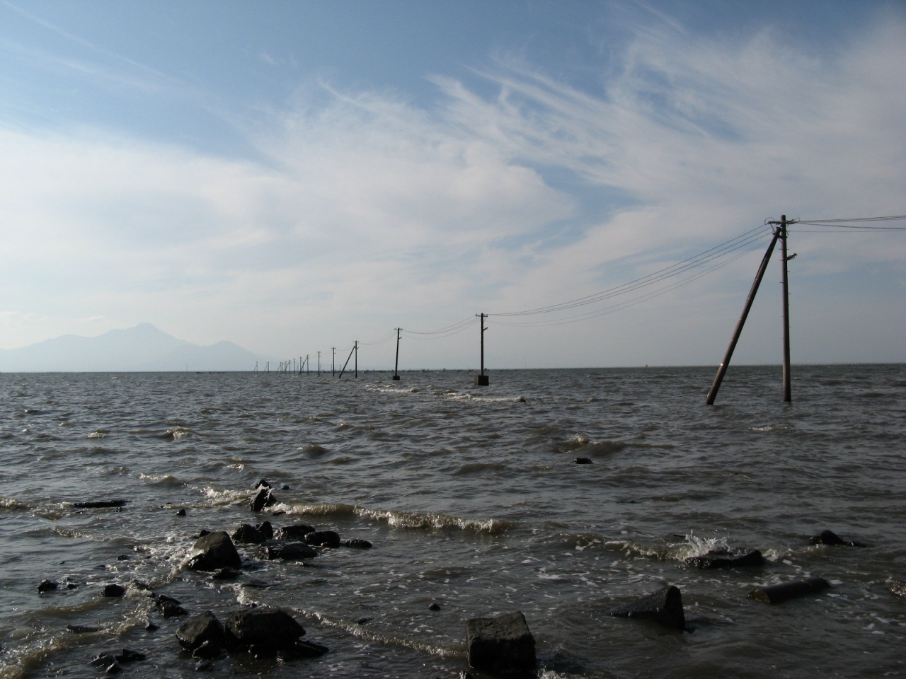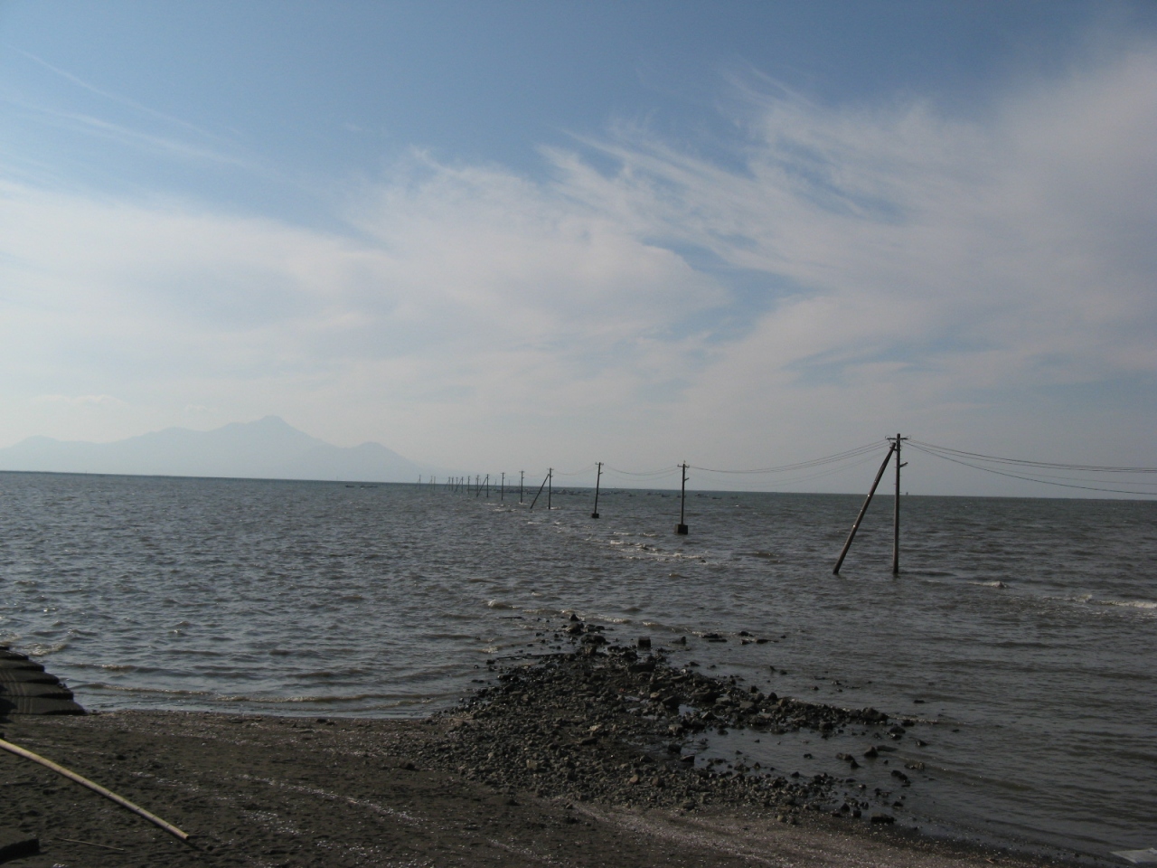 「御輿来海岸」のある有明海は全国でも特に潮の干満の差が大きいところで、大潮の最干時には雄大な干潟が現れます。海岸には、沖合に向かって電柱が続く焼酎のCMで有名な“長部田海床路”があり、興味深く拝見しました。どこでもかしこでも見ることが出来る風景ではないので、近くに行かれたら“長部田海床路”を見られることをお奨めします。- 旅行時期