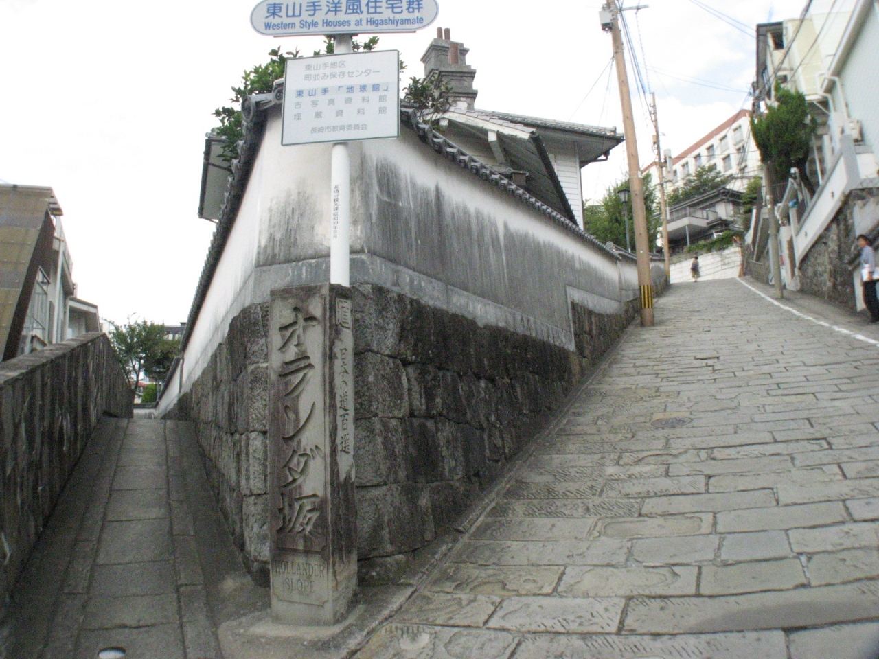 長崎市にある“国の重要伝統的建造物群保存地区”です。石畳の急なオランダ坂を登っていくと、“オランダ坂の石標”と共に“東山手洋風住宅群”の表示があります。その坂に沿って明治20年代に建てられた木造洋館が全部で7棟(坂の上側に3棟、下に4棟並ぶ)建っています。内外とも意匠・仕上げが質素ですが、おしゃれで町並みにしっかり溶け込んでいる姿は美しいものでした。中が資料館になていて無料で見られる洋館もありますのでお奨めします。