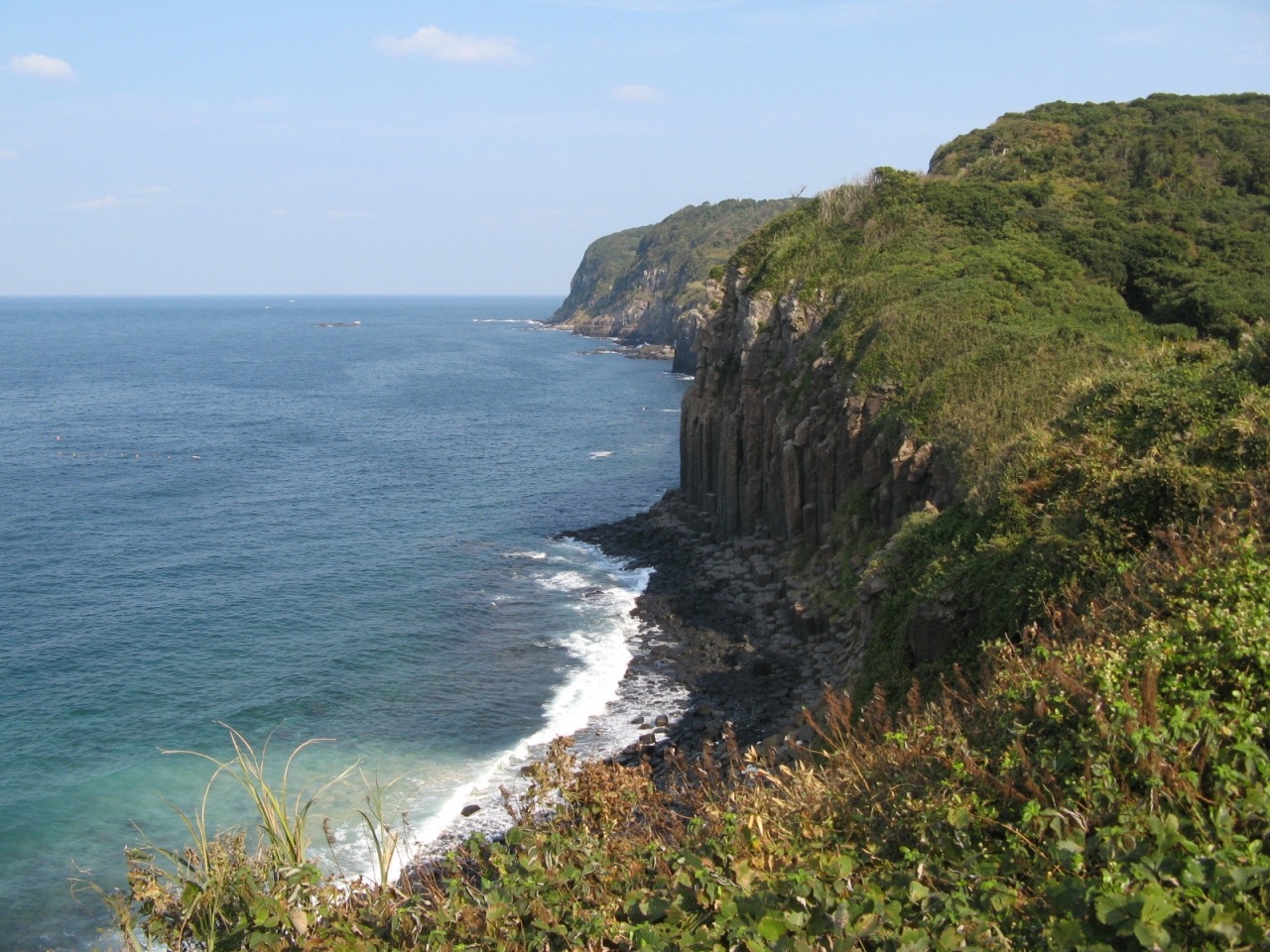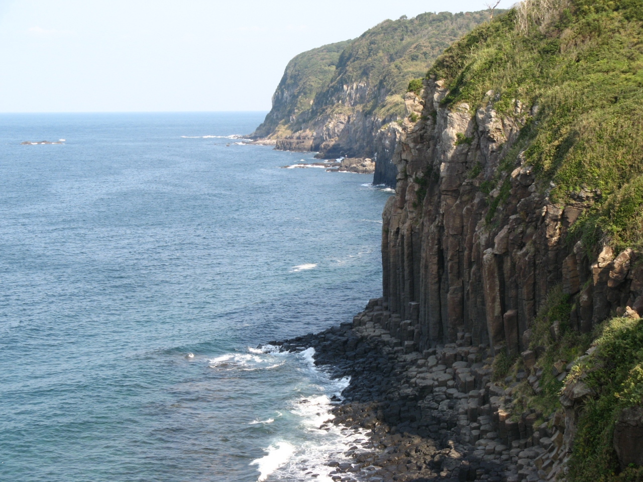 「塩俵の断崖」は玄海灘の荒波に洗われてできた、亀の甲模様の玄武岩の柱状節理で、南北に約500m の長さがあり、海面からの高さも20m もあります。周辺に展望台などが整備されており、ここから大バエ灯台まで 3.3Km の遊歩道もあり、絶景が楽しめました。