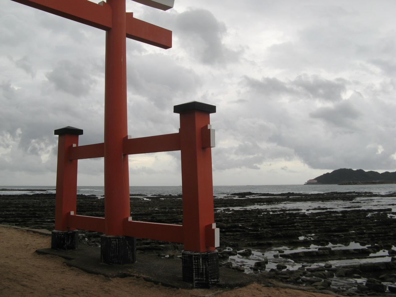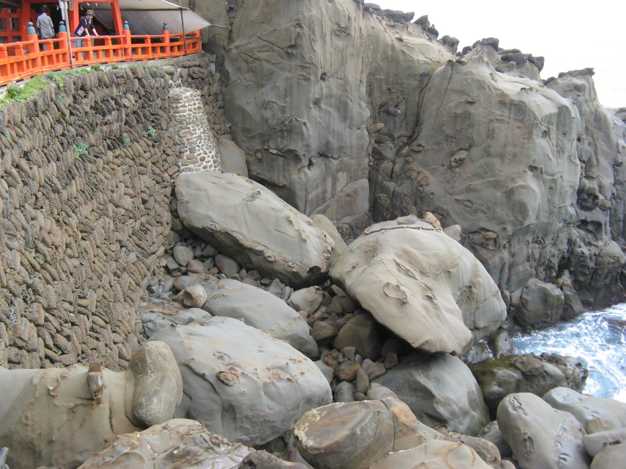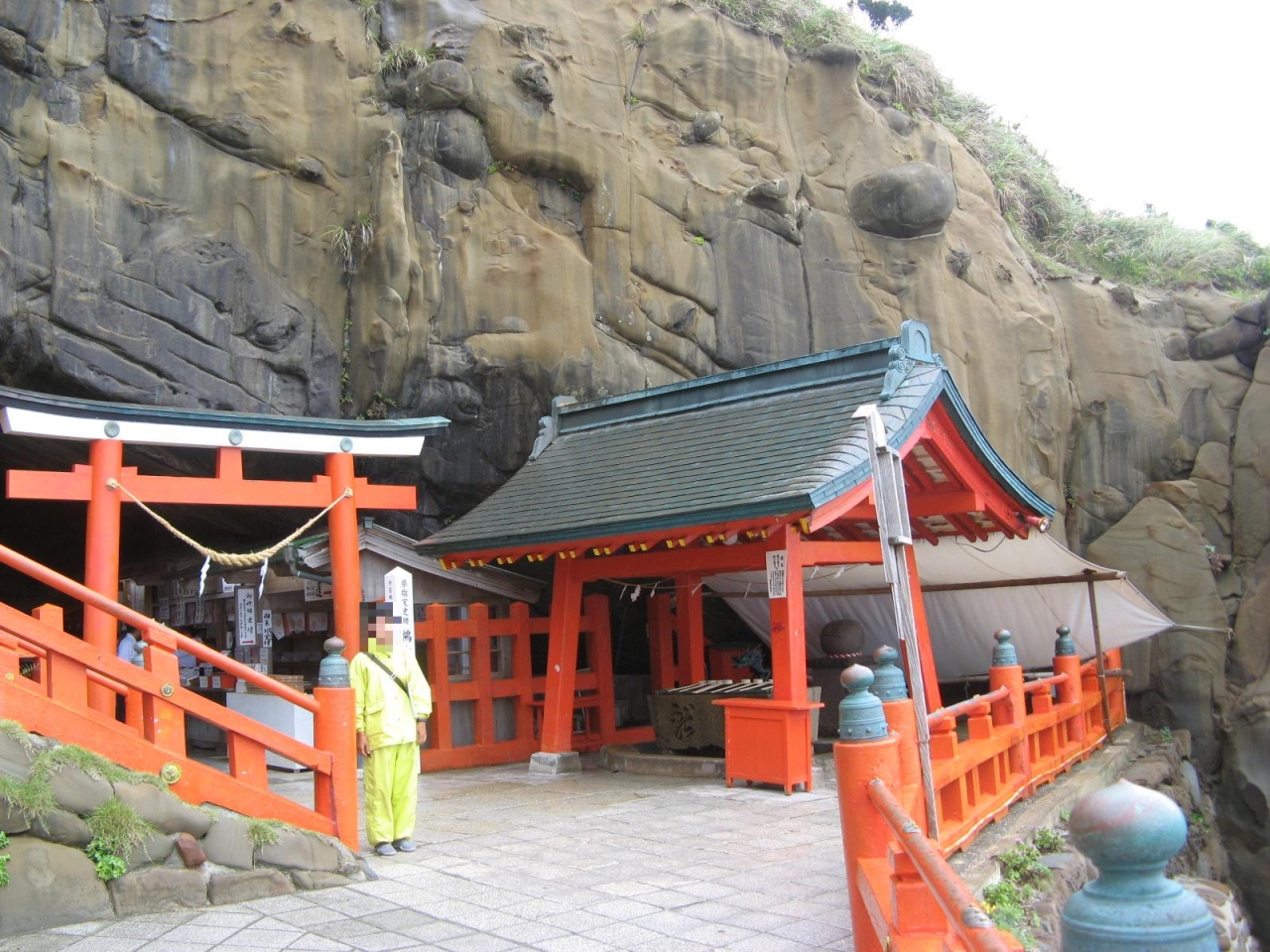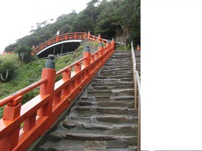 • 岬の突端の洞窟の中に、朱塗りの色鮮やかな御本殿
