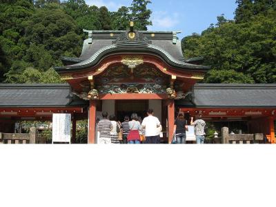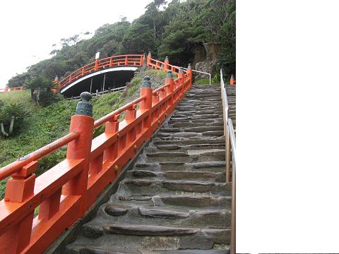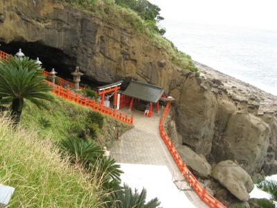 太平洋に突き出した鵜戸崎岬の突端にある洞窟の中に、朱塗りの色鮮やかな御本殿が鎮座する珍しいもので、こんな場所によく建設したなあと感心しました。