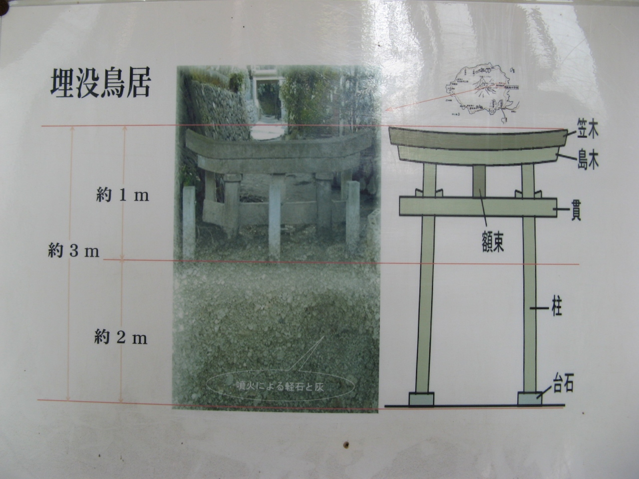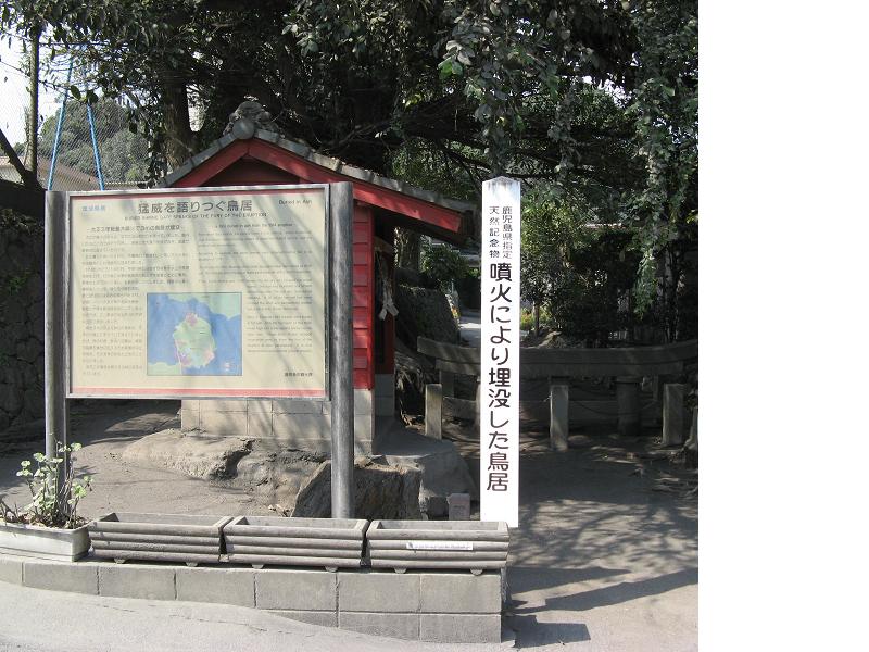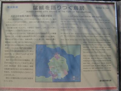 九州一周旅行で桜島に行きました。時計回りに桜島を一周、その途中に「黒神埋没鳥居」を見に寄りました。ガイドブックなどから知ってはいましたが、実物を見て、1914年の大爆発の様子がすさまじいことが感じられ、本当に驚きました。当時、被害にあった人は見るのも辛かったでしょうが、残しておいてくれたことに感謝しました。