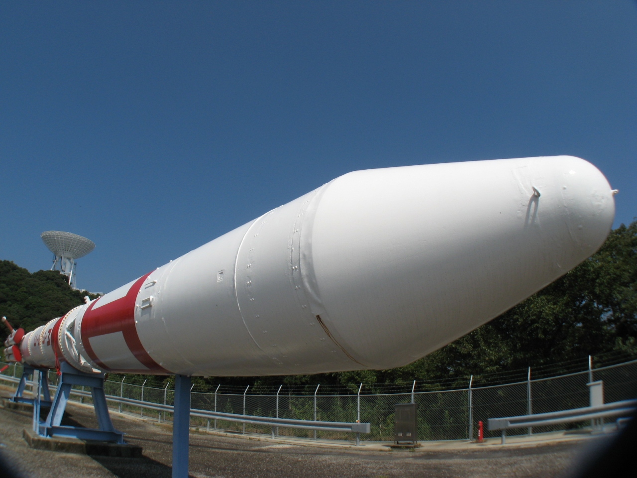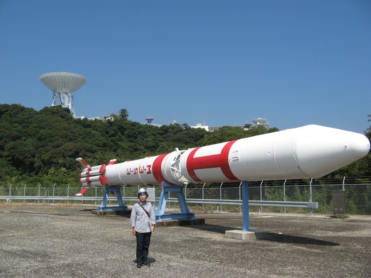大隈半島の西、内之浦町の国道448号線近くに日本最初の人工衛星“おおすみ”が打ち上げられた“鹿児島宇宙空間観測所”入り口があります。門衛所にはゲートがあり、厳重な警備体制が敷かれていました。出身地の都道府県名と、氏名を受付の用紙に書いて申請するとゲートを空けてくれます。