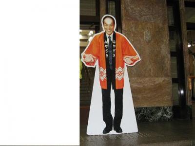 建物は左右対称でネオ・ゴシック様式の風格ある建物です。玄関先には、東国原知事の等身大パネルが置いてあったので、記念撮影をしようとすると、ガードマンさんが写真を撮ってくれました。2階までは自由に見学できると言うので、一通り見てまわりました。働いておられる職員の方々には不便なところも沢山あるのでしょうが、大理石の階段や室内の様相など時代を感じさせる立派な建物でした。
