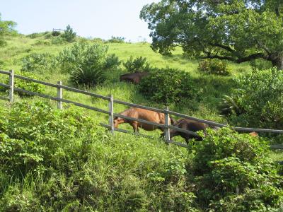 「都井岬」に行く途中には野生の馬がいました。岬の周辺には御崎神社や都井岬ビジターセンター(うまの館)などがあり、かなり広いところですが、静かで、行き交う人も車も少なく昔に比べ少し寂れているような印象を受けました。その分、ゆったりと観光することが出来ました。天気が良ければ絶景を楽しむことが出来ますので、“牛馬保護協力費”は高くないと思います。