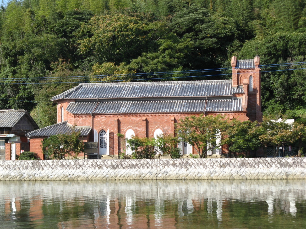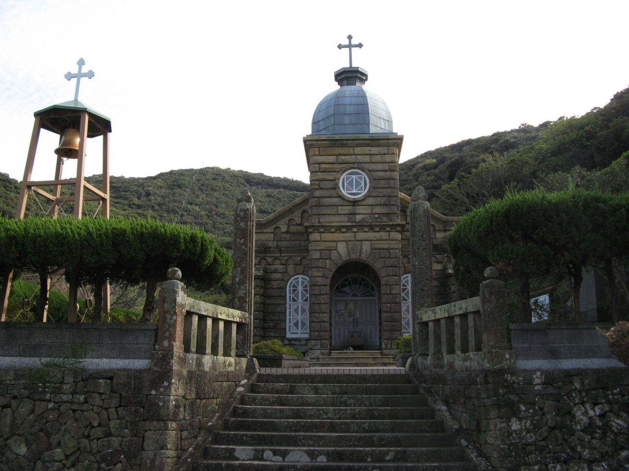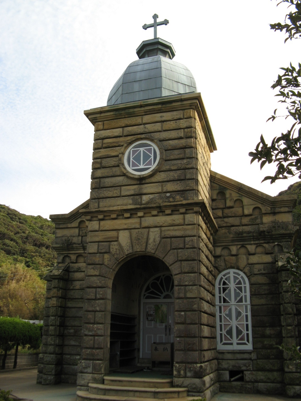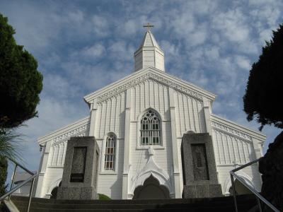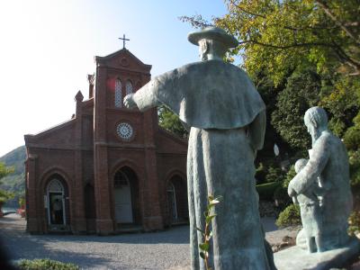 福江の中心部から車で15分ほどのところにあります。五島最古の教会で煉瓦作りが重厚さをかもし出し、周囲の綺麗な海とマッチして素晴らしい光景でした。現在この教会ではミサは行われておらず、キリシタン資料館として当時の貴重な関連資料が展示されています。300円の入館料が必要でした。
