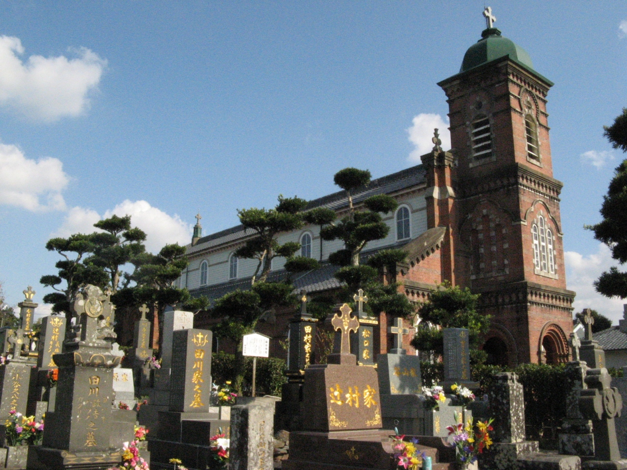 教会の傍にはお墓があり、日本式の墓石の上に十字架を載せたお墓が沢山あるのを見て、不思議な感覚を覚えました。- 旅行時期