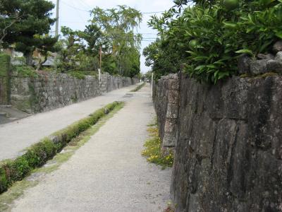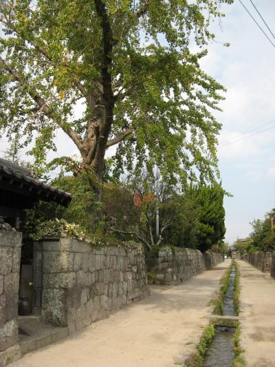 武家屋敷跡は島原城の北西にあり、扶持(ふち)取り70石以下の島原藩の下級武士たちの住居が建ち並んだエリアで、約400mに渡って苔むした見事な石塀が続く家並みが保存されています。山本邸、篠塚邸、島田邸などが一般に無料公開され、武士の人形なども置かれておりその当時の武士の生活がうかがえるようになっていました。