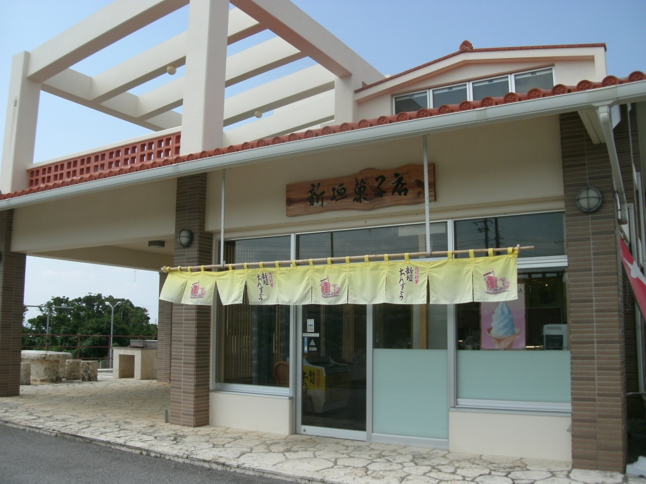 お店の前には駐車場があり、店内はたいへん綺麗で、沢山の種類のちんすこうやお菓子が並んでおり、試食もさせてもらえます。ちんすこうがトッピングされたソフトも美味しいです。