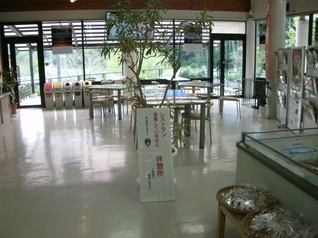 道の駅としては小規模で、特産品・お土産販売コーナーや情報コーナーはあるが、レストランはありませんでした。特産は柚子らく、柚子サイダーや柚子ジュース、ポン酢、柚餅子などの柚子商品がたくさん販売されていました。その他、おみやげとしては地酒類も目につきました。
