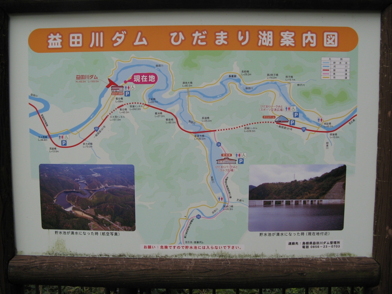 ダムサイト右岸に管理所があり、ダムの案内板があります。管理所の傍に一般の方が利用できるトイレや駐車場も整備されています。
