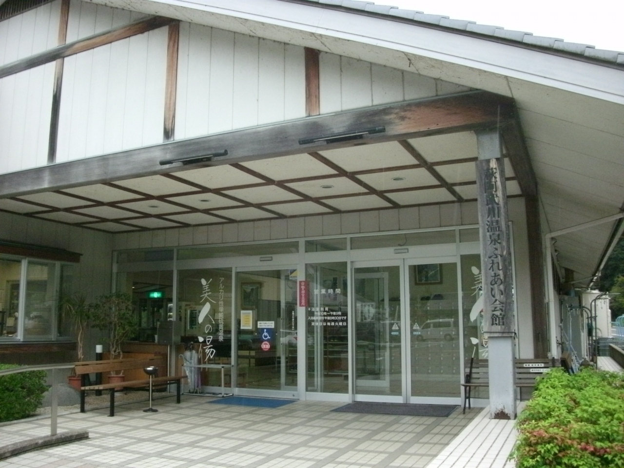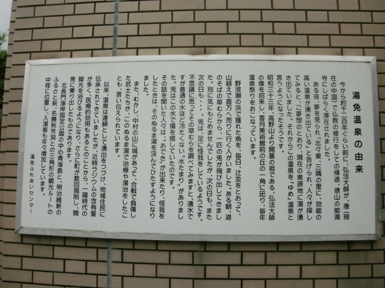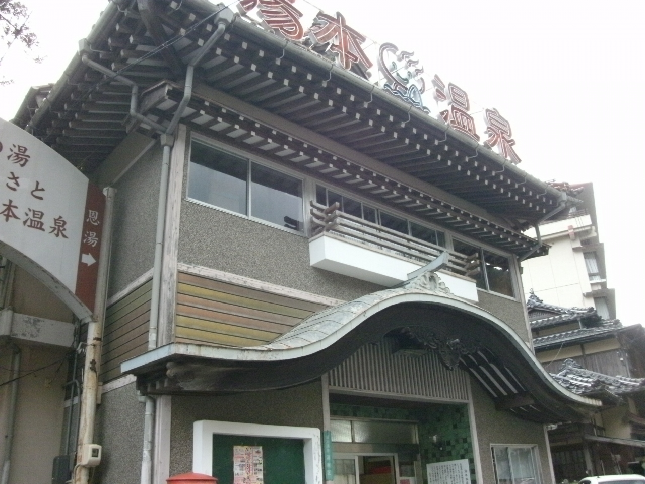 「湯免温泉」と言っても、公共の日帰り温泉施設とホテル1軒があるだけで温泉街というような情緒はありません。公共の温泉施設である「湯免ふれあいセンター」を利用しました。料金は大人500円で入り口の券売機で入浴券を買うシステム。以前は入浴料に貸しタオルが付いていたようですが、受付のカウンターには貸しタオルは廃止されたとありました。タオルは150円、バスタオルは500円で売っていました。