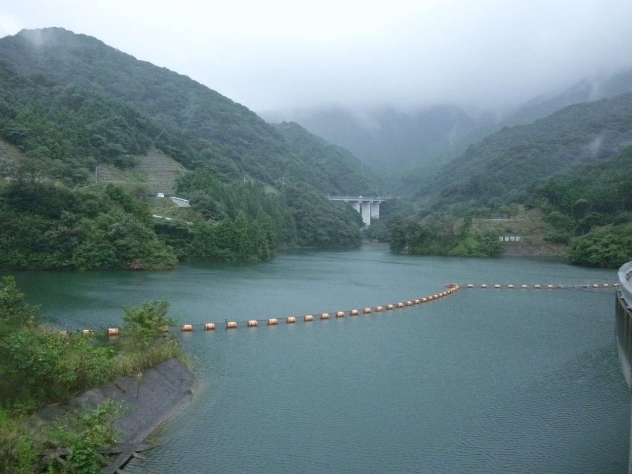 竣工が2006年という比較的新しいダムで、ダム堤体の両端が湾曲しているので少しアーチ式ダムのような感じがしました。ダム堤体上は車進入禁止になっていましたが、歩いてなら入ることができるので堤上から下流側を覗くことができました。