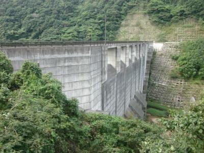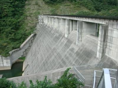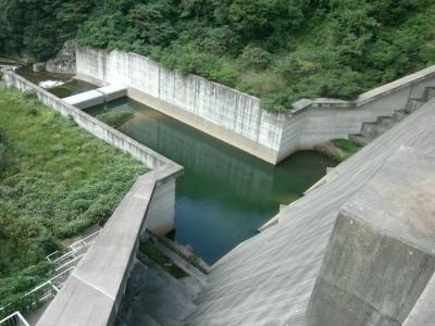 2005年に竣工された比較的新しいダムで、治水のみを目的としたダムであるため、常用洪水吐きを川の底部に設置したいわゆる穴あきダムの構造を採っており、平常時は全く水を貯めないため、訪れたときも水は溜まっておらず常用洪水吐きを観ることができました。