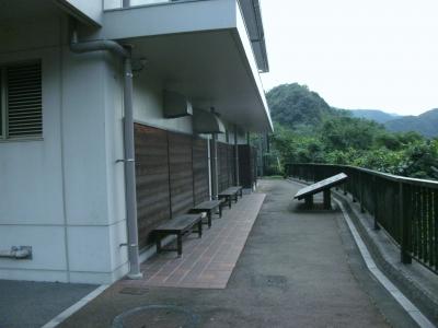 ダムサイト左岸に管理所があって、その横にベンチやダムの説明板があります。
