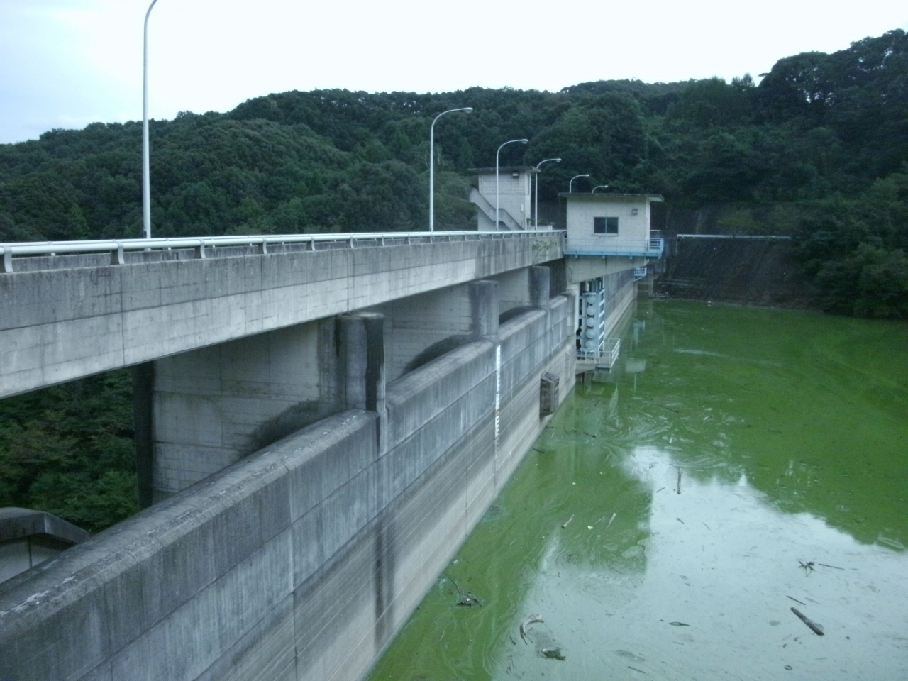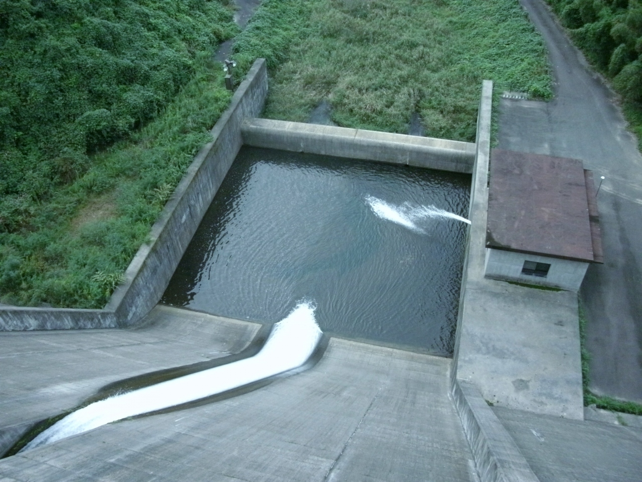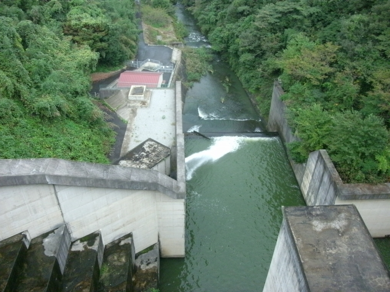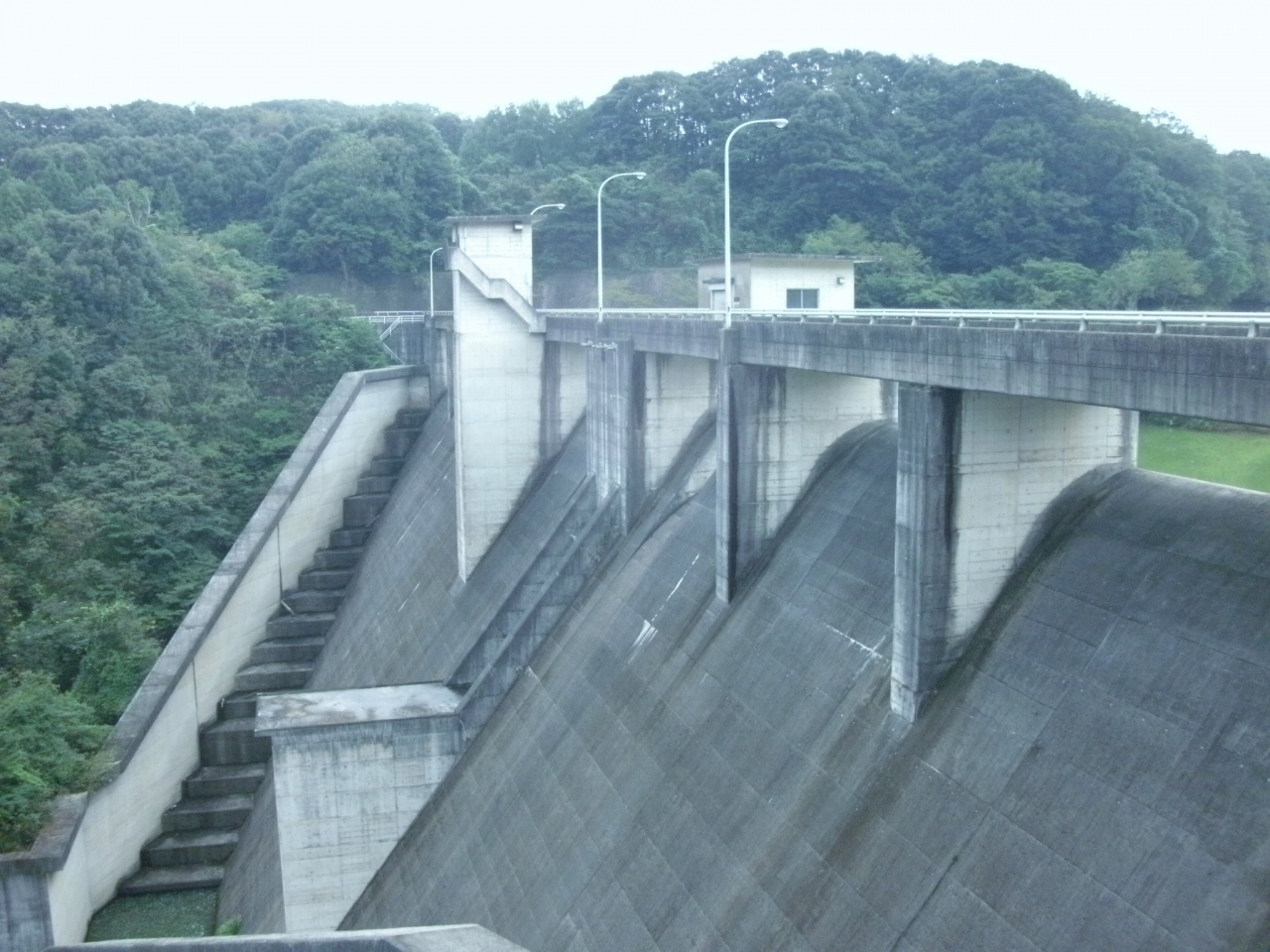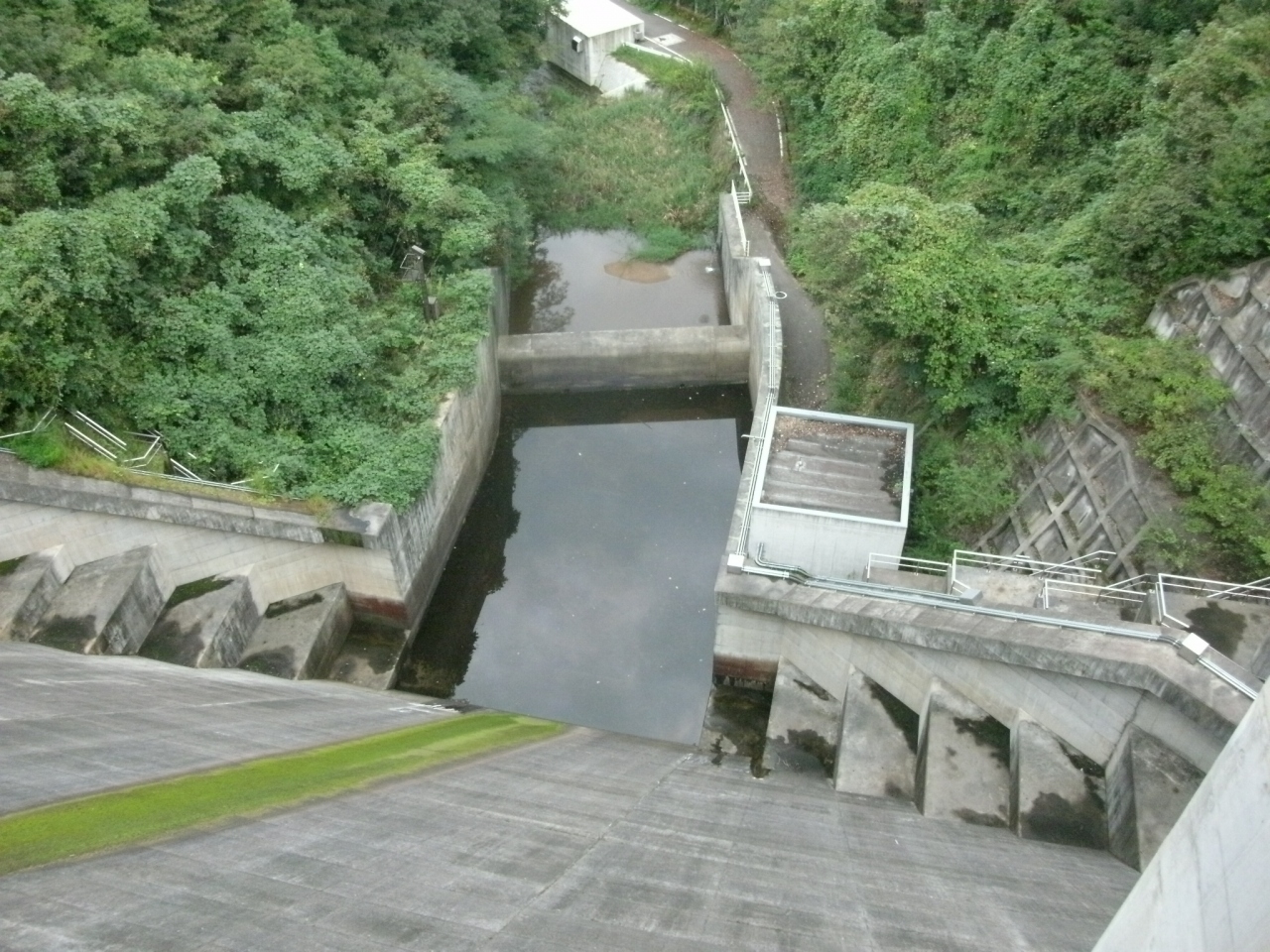 洪水調節や水道用水の確保を目的とする堤高46.4m、堤頂長174mの重力式コンクリートダムです。