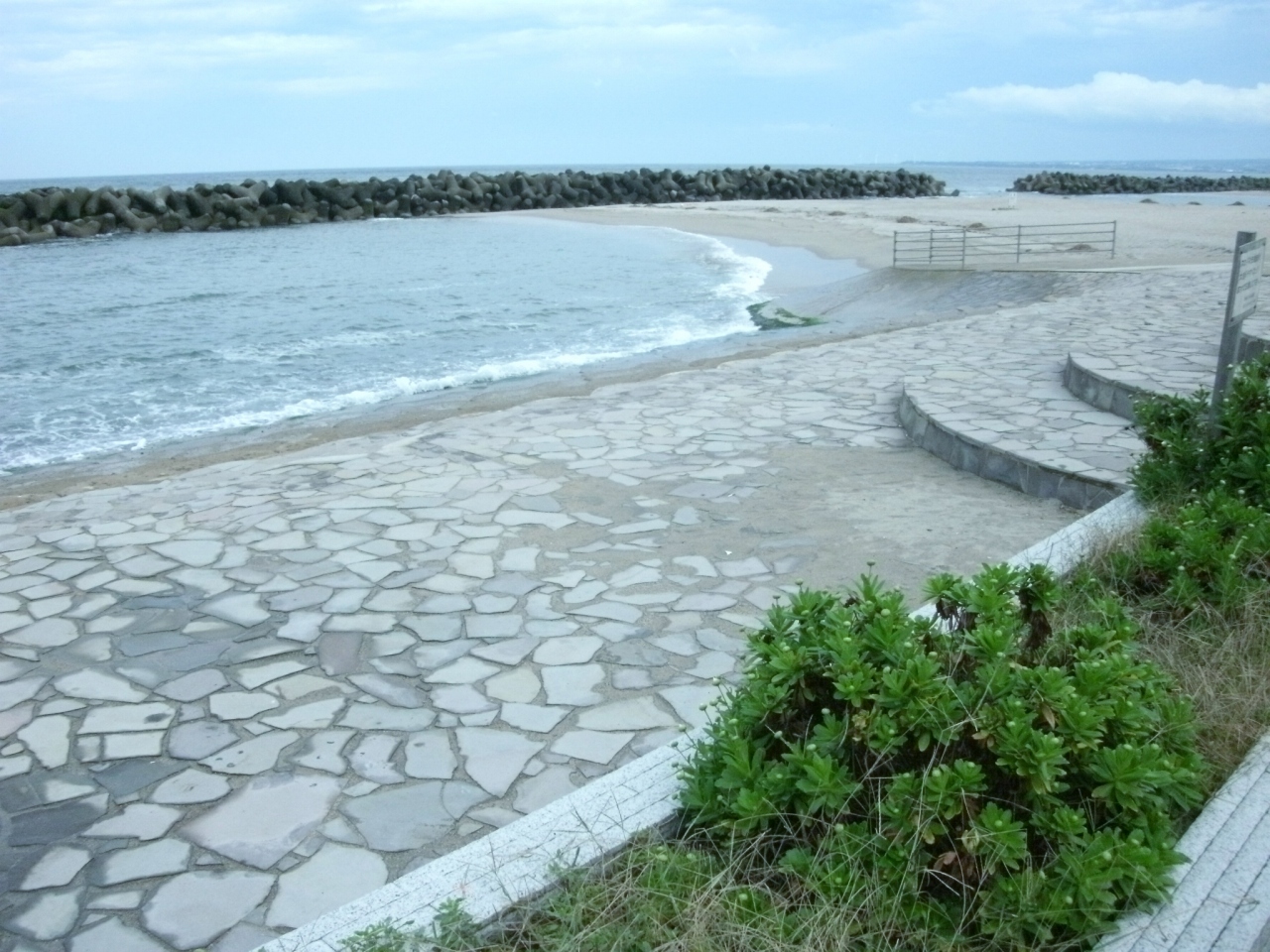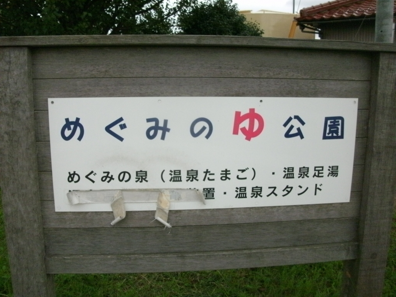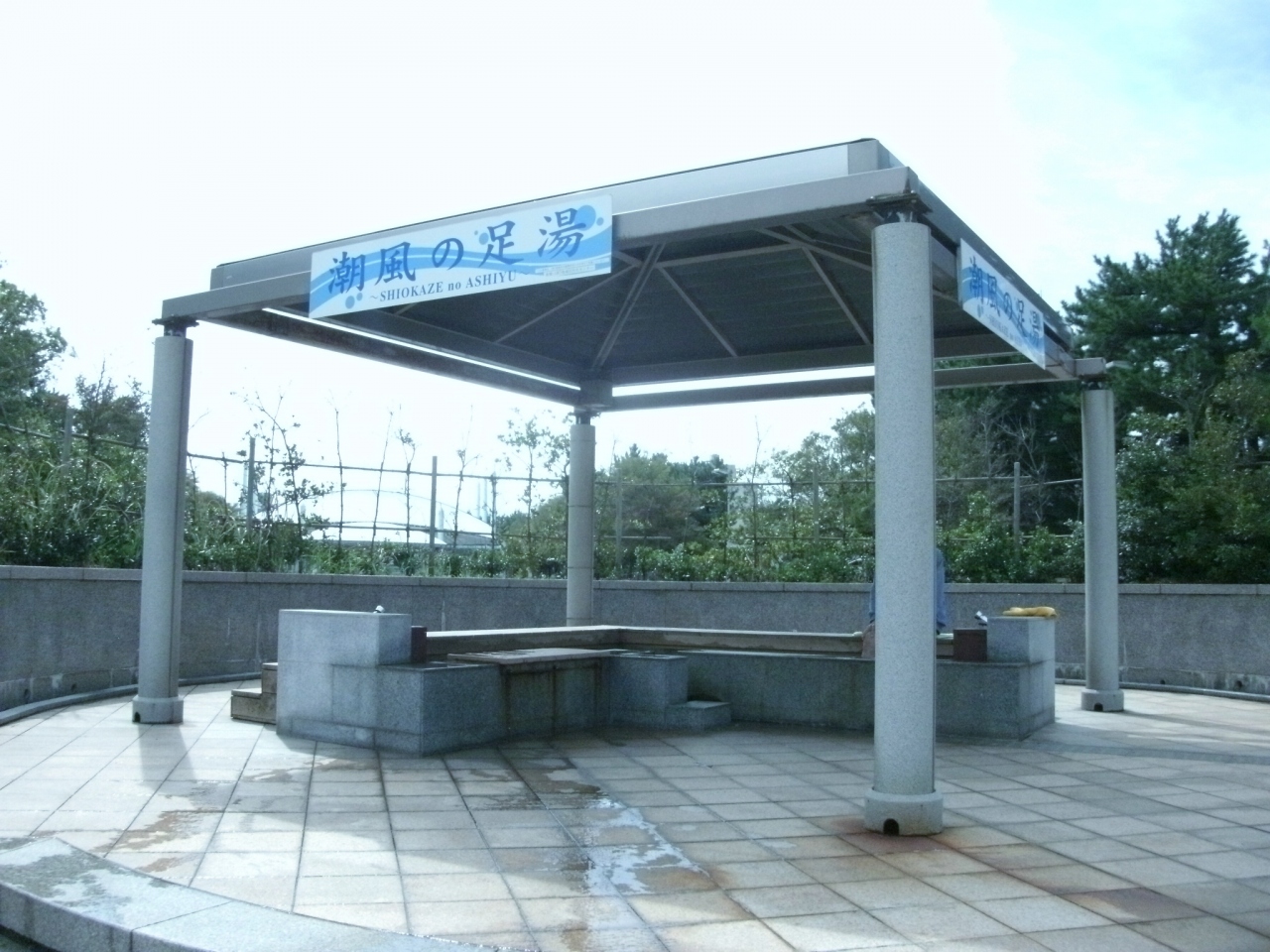 温泉街の中心近く、県道300号線に面したところから海に向かって幅50m、奥行200mほどの広さがある公園です。県道側に近い位置は、子供向けの遊具や屋根付きゲートボール場、東屋等があるゾーンになっていて観光客にとってはそれほど利用価値はないと思いますが、県道から入って奥の方(海の方)に無料で利用できる足湯があります。海を見ながら入る足湯はなかなか気持ちが良かったです。ここから海岸遊歩道に出られますので、温泉街散策時には立ち寄られることをオススメします。