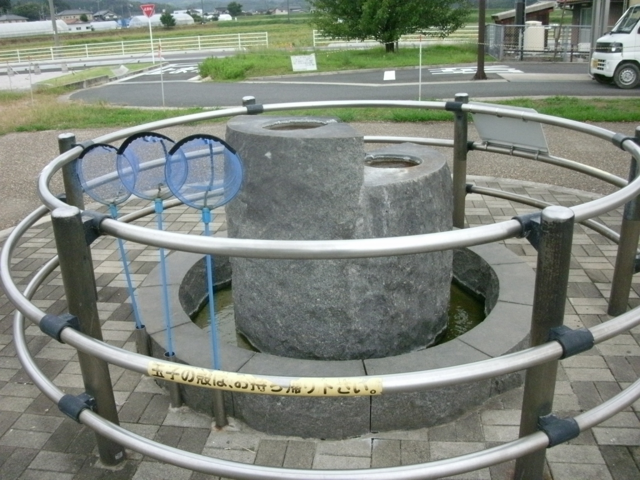 皆生海浜公園の敷地内にあります。足湯部分は長さ5mほど、L字型になっていて一度に10名ぐらいが利用できそうな大きさで、屋根があるので小雨や小雪程度なら天気が悪くても利用できそうな造りになっていました。源泉温度は60℃以上あり、温度調節用の水道もついています。