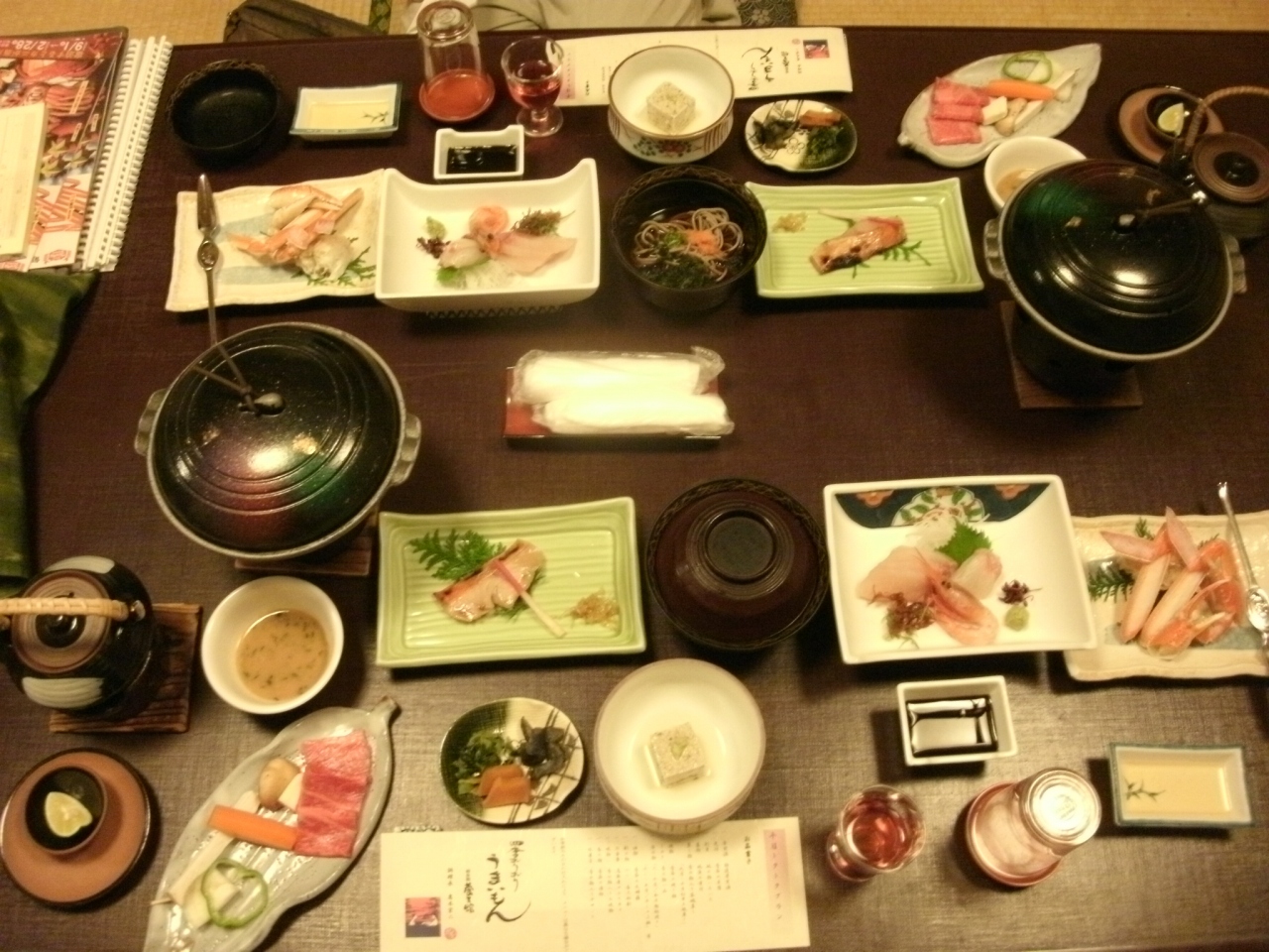 食事は魚介を中心にした和風会席で、丁寧に造ってあって美味しかったし、夕食・朝食ともに部屋食で落ち着いて食事できました。
