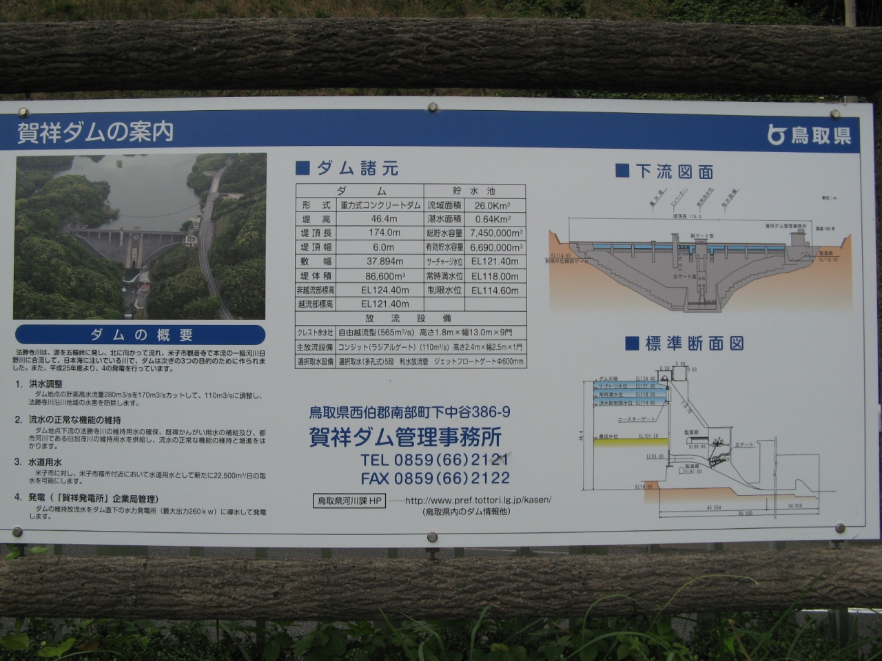 なお、ダムサイトにある管理所は通常は無人になっていてダムカードを頂くことができません。ダムカードは、ここから車で40分ほどの“賀祥ダム管理事務所”で頂けます。対応していただけるのは、8:30~17:30(土・日・祝日含む)です。
