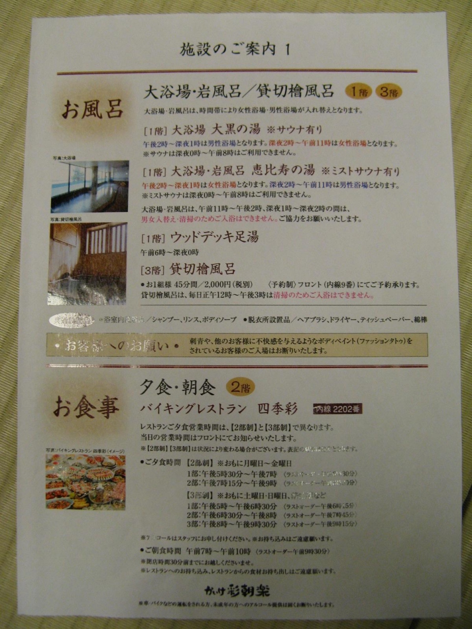 食事は、夕・朝ともパイキングで、特別変わったものや手の込んだものは無かったですが、宿泊料金を考えたら十分納得できるものでした。