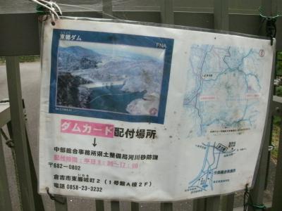 ダムサイト右岸に管理所がありますが、通常は無人になっていてダムカードを頂くことができません。門扉にダムカード配布についての表示(添付写真を参照ください)があったので、それに基づき中部総合事務所 県土整備局河川砂防課を訪れてダムカードを頂くことができました。なお、対応していただけるのは、8:30~17:00(土・日・祝日は配布していません。)で、ダムへ行った証拠写真を提示する必要があります。