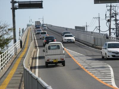 かなり前に自動車メーカーのテレビCMで気になっていた通称“ベタ踏み坂”、近くを旅行する機会があったので境港市側から松江市江島側に渡ってみました。