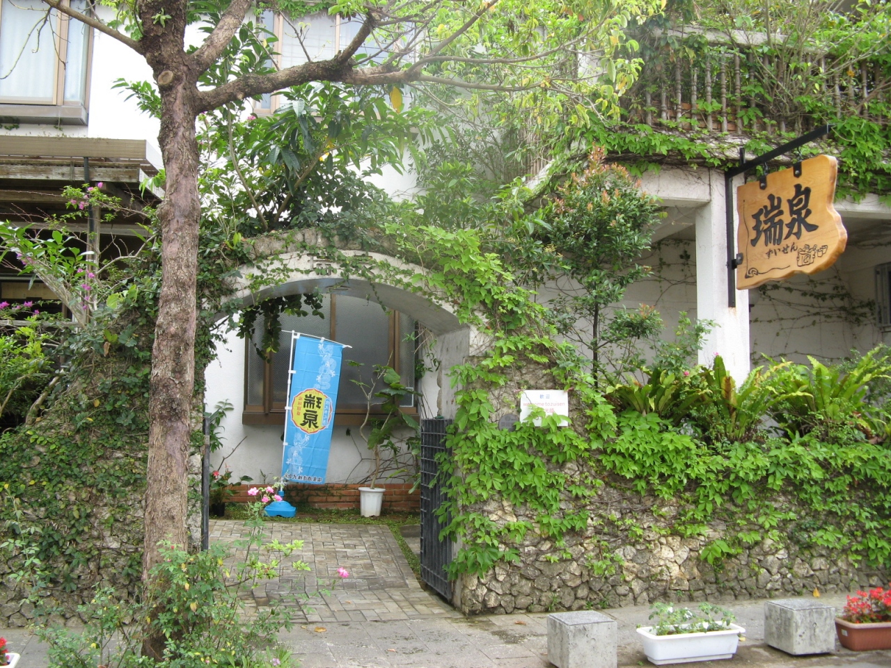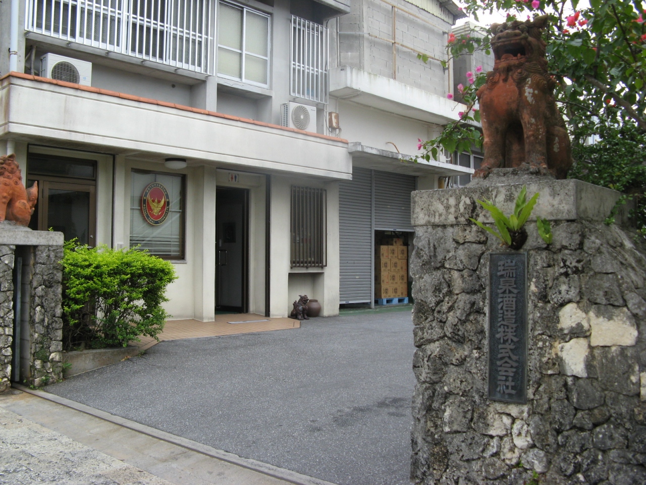 首里城の南、歩いてすぐ、首里崎山の馬場(瑞泉)通りにある泡盛の酒造所です。建物の前には広めの駐車場があるので車ででもOKです。
