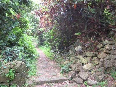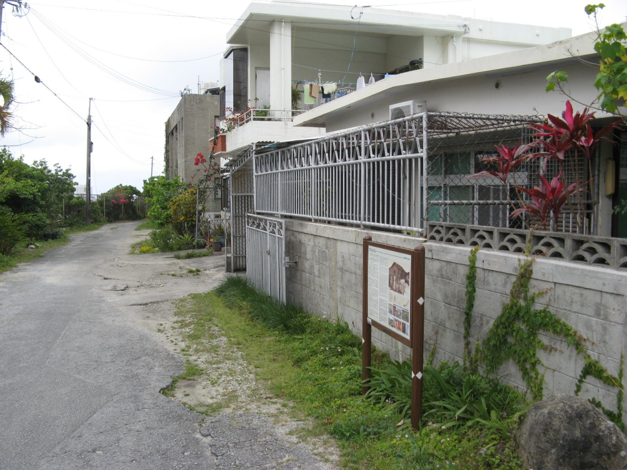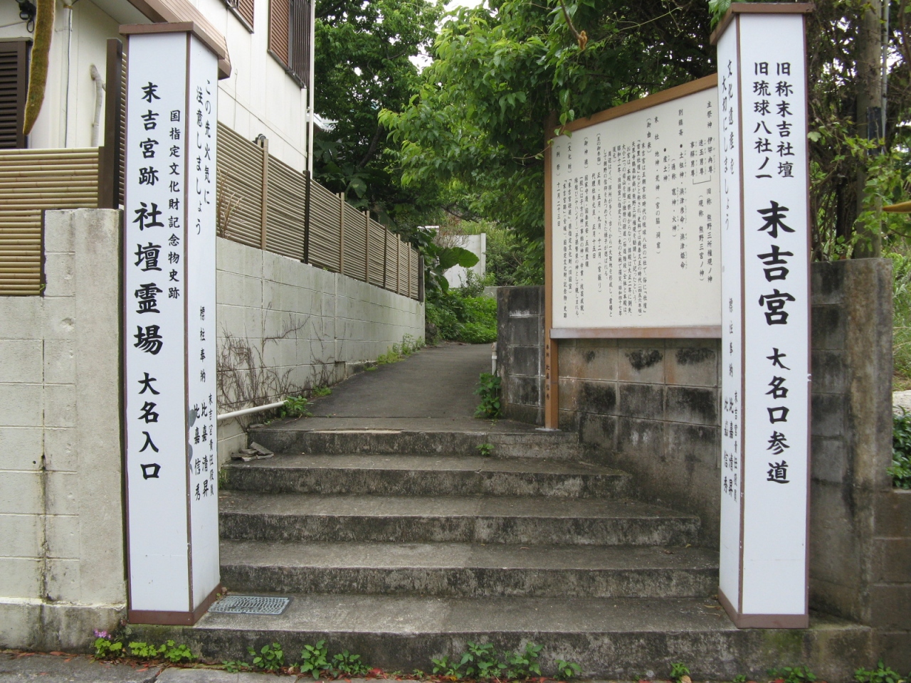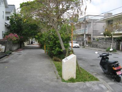 末吉宮跡に至る道は複数ありますが、末吉公園の北側、住宅街に300mほど一直線に伸びた広い通り(平良真地跡:琉球王国時代の馬の調教及び競馬場跡)の中ほどにある大名口参道から参拝しました。