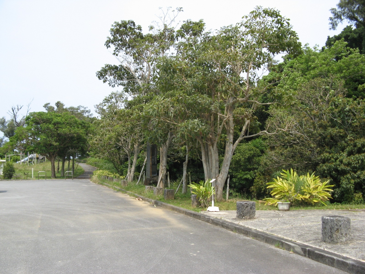 真壁公園は、真壁グスク跡を整備して作られた公園で、園内には、遊歩道が設けられ、遊具のある遊び場や真壁宮、戦没者の慰霊碑、展望台などがあります。展望台のある広場へ上る階段の横に、城壁らしき石積みが残っていますが城郭ははっきりと判りませんでした。