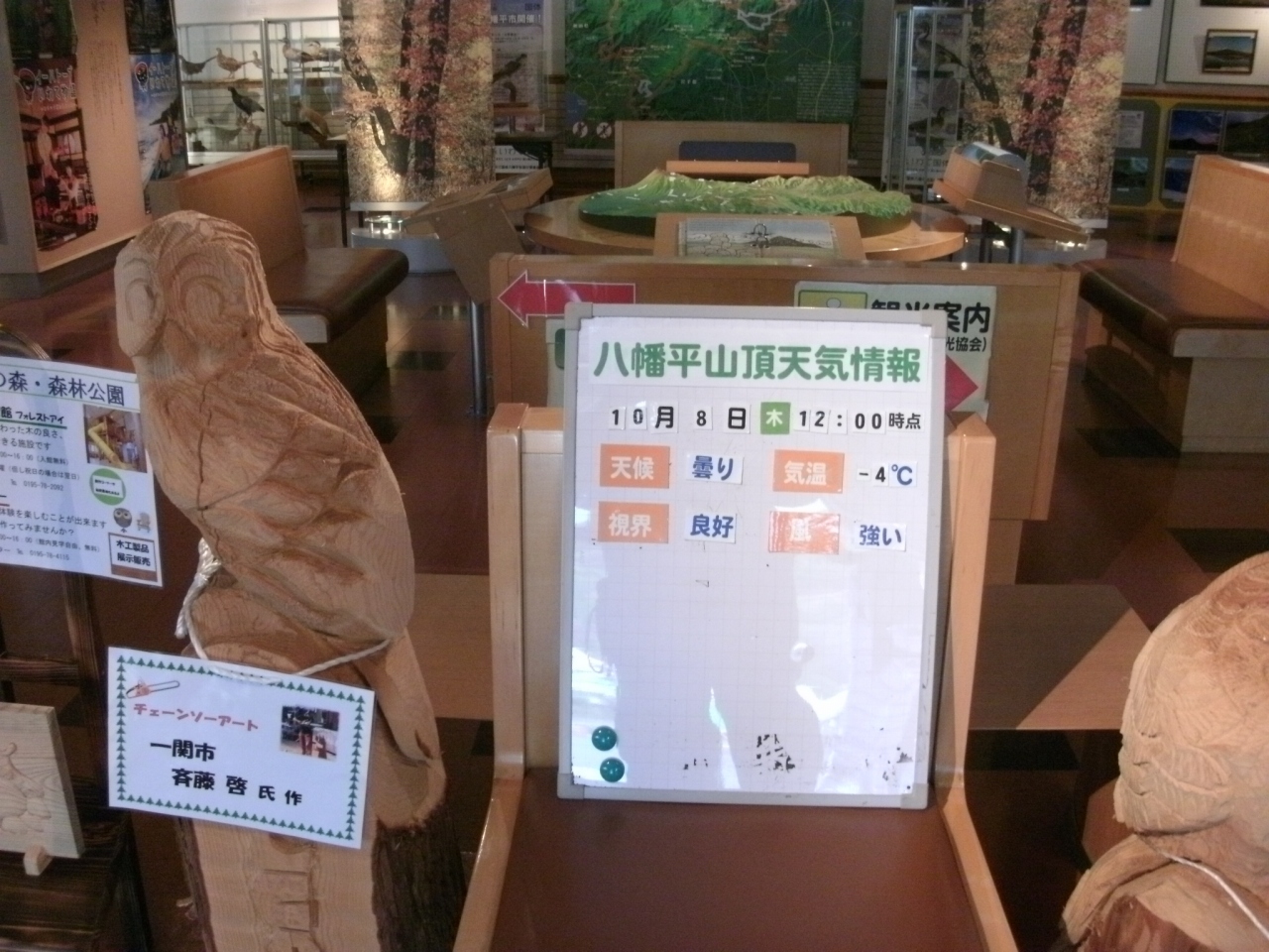 秋田県と岩手県にまたがる八幡平は、両県側の麓の県道線(アスピーテライン)沿いに国立公園のビジターセンターが設置されています。「松尾八幡平ビジターセンター」は、岩手県側の県道23号線沿い、松尾さくら公園の中にあります。八幡平・岩手山のハイビジョン映像やジオラマ、八幡平付近生息する動物や野鳥などの剥製、昆虫標本、高山植物などを展示・紹介しています。八幡平周辺のパンフレットなどが置いてあるし、無料で入館できますので岩手県側から八幡平に行くときに立ち寄って、情報収集されることをオススメします。