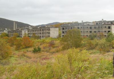 松尾鉱山は19世紀末から1969年まで八幡平にあった硫黄鉱山で、最盛期には従業員とその家族を合わせて1万5000人を数え、鉄筋コンクリート造りのアパートや病院、学校、劇場などが次々と建設されるなど、標高1000mの山の上に造られた近代都市は“雲上の楽園”と称されたそうです。閉山後、木造の建物は焼却され、鉱山施設も残っていませんが、当時の鉱山の繁栄ぶりを象徴する鉄筋コンクリートの建物だけが丘の上に残っています。
