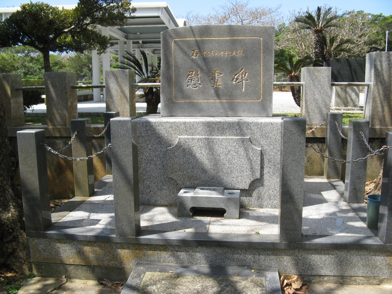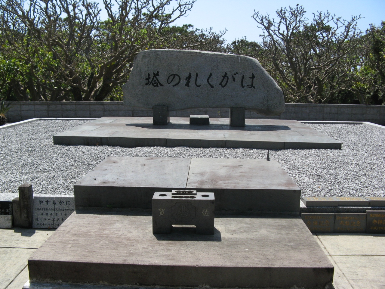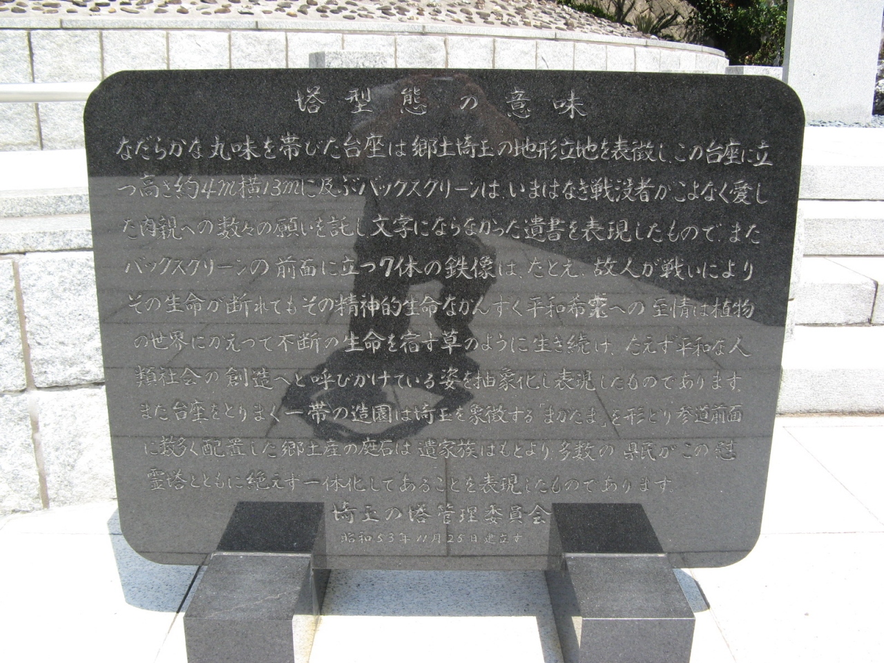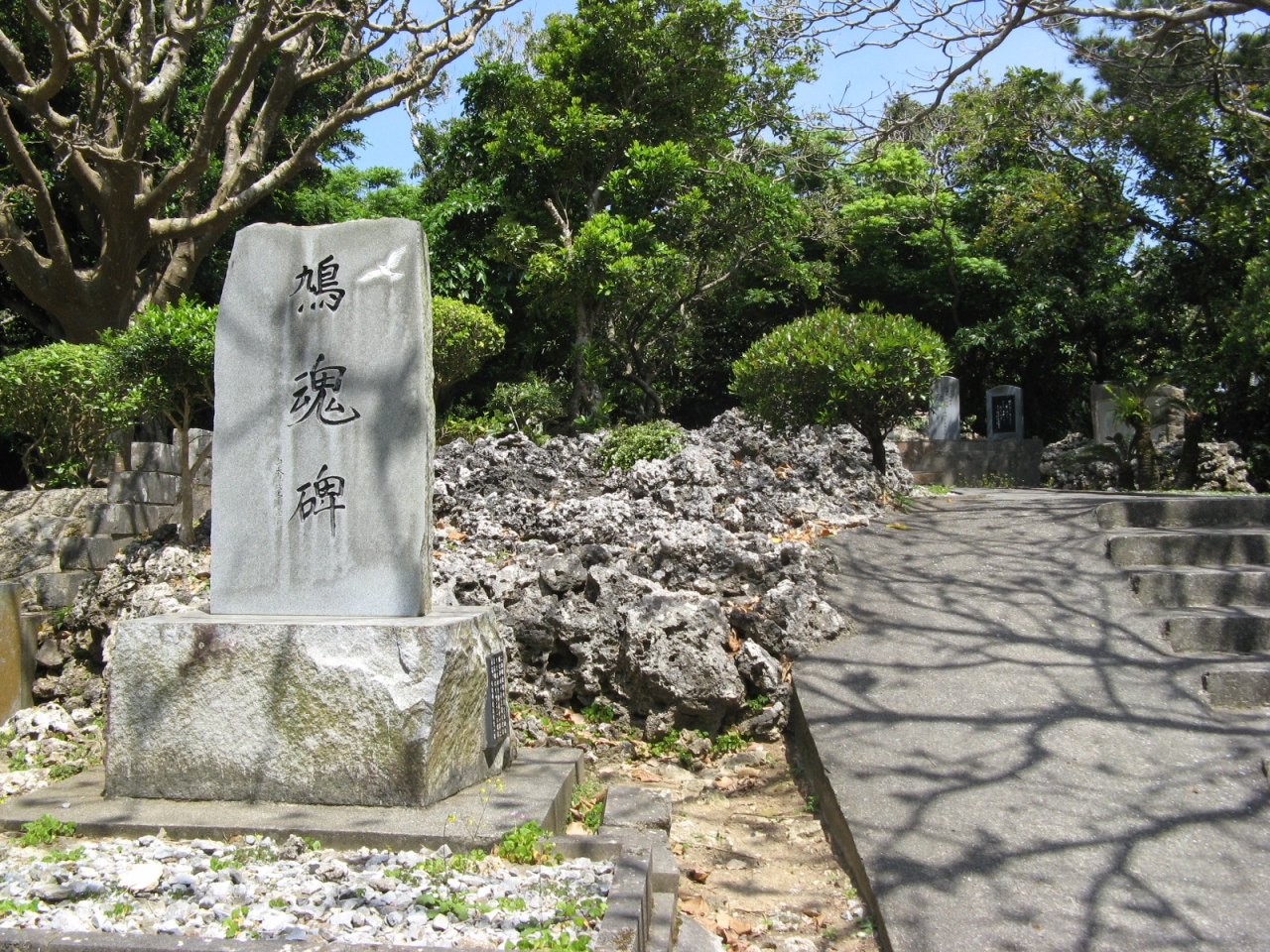 平和祈念公園の霊域ゾーンの中央辺りにあります。塔そのものは、そのほど大きくない御影石のあっとりとしたデザインですが、敷地の入り口にある鳥居をくぐって進むと石橋や山水庭園で構成され、全体的に神社風な造りになっています。碑文は、他県のものに比べるとちょっと勇ましい記述になっていますが、県民のご英霊に対する気持ちが伝わってきます。
