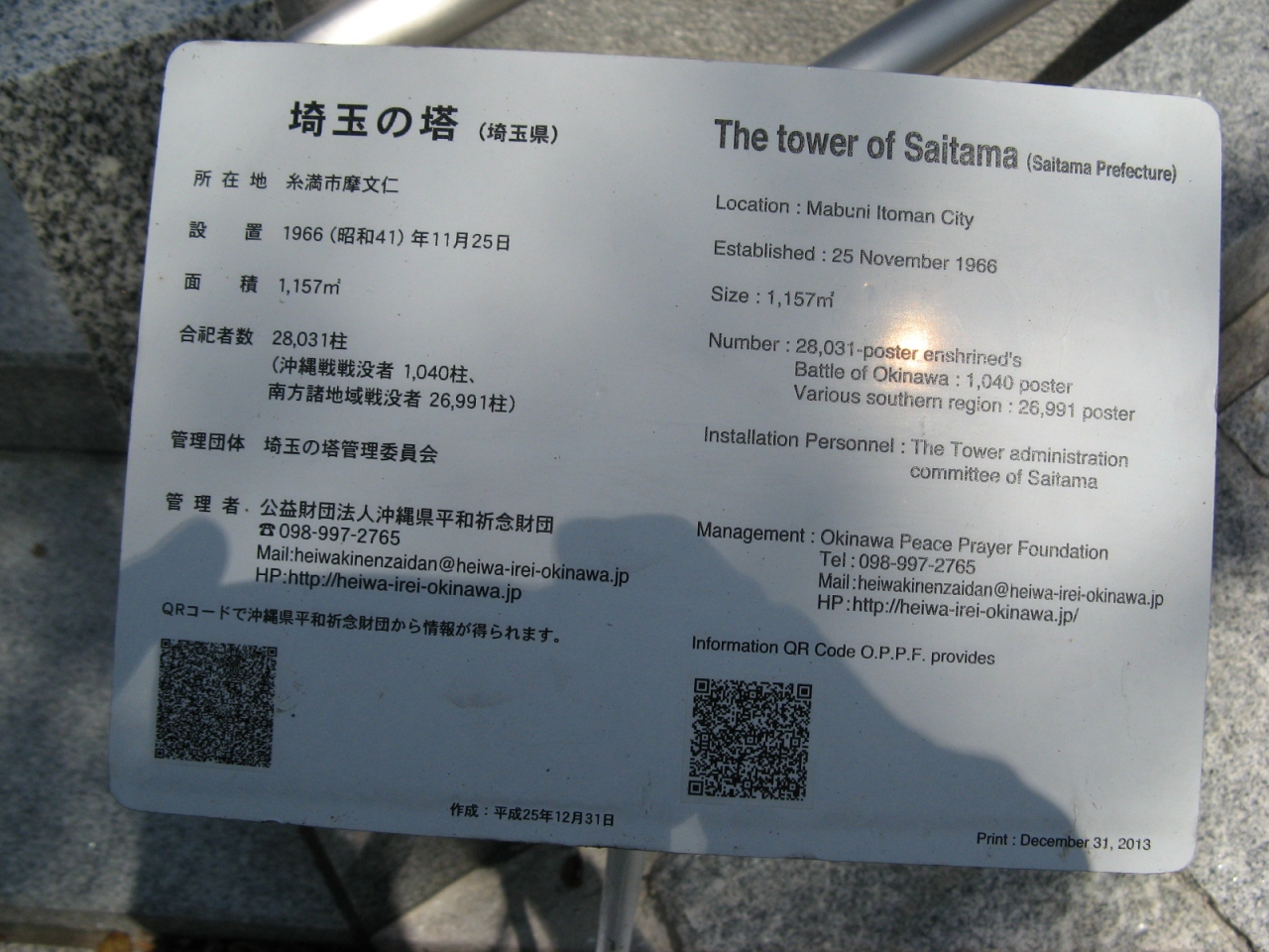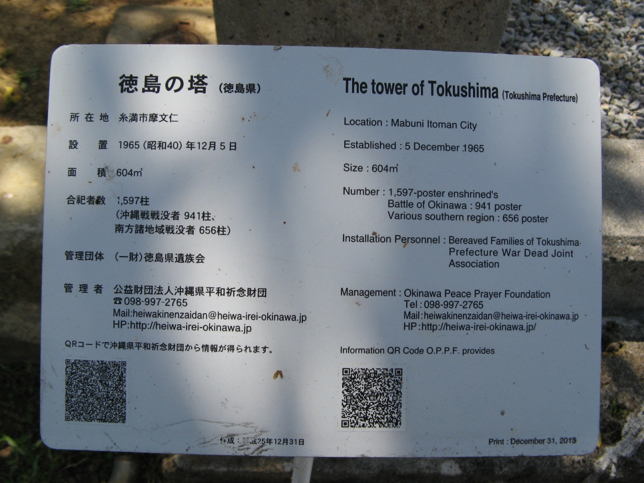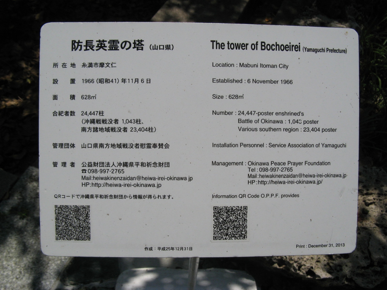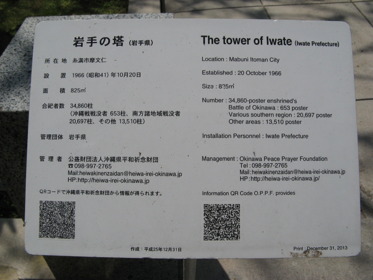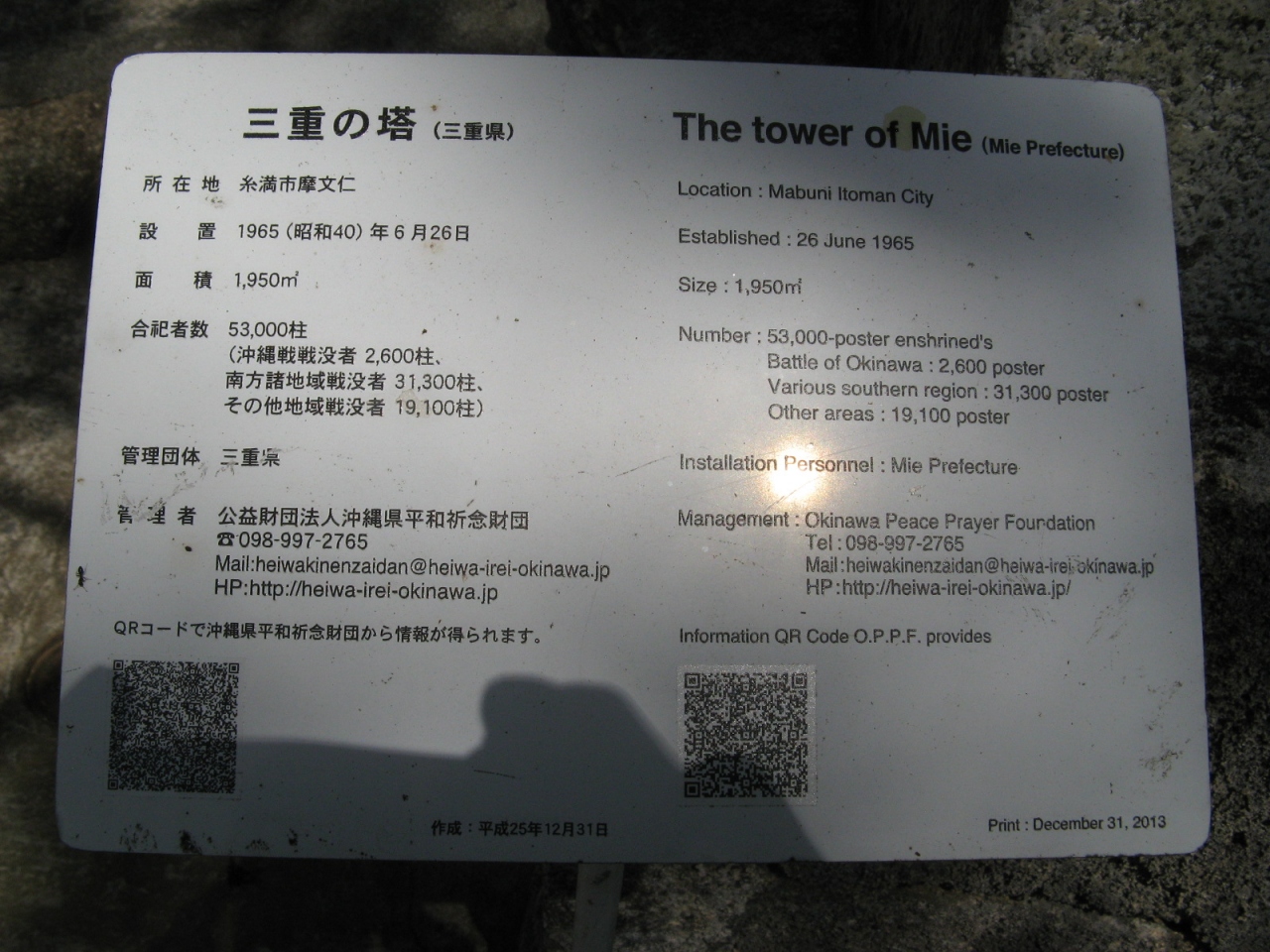 塔の入り口には、QRコードで、沖縄県平和記念財団から情報を得られるようになっていので、参考にされるとよいでしょう。- 旅行時期