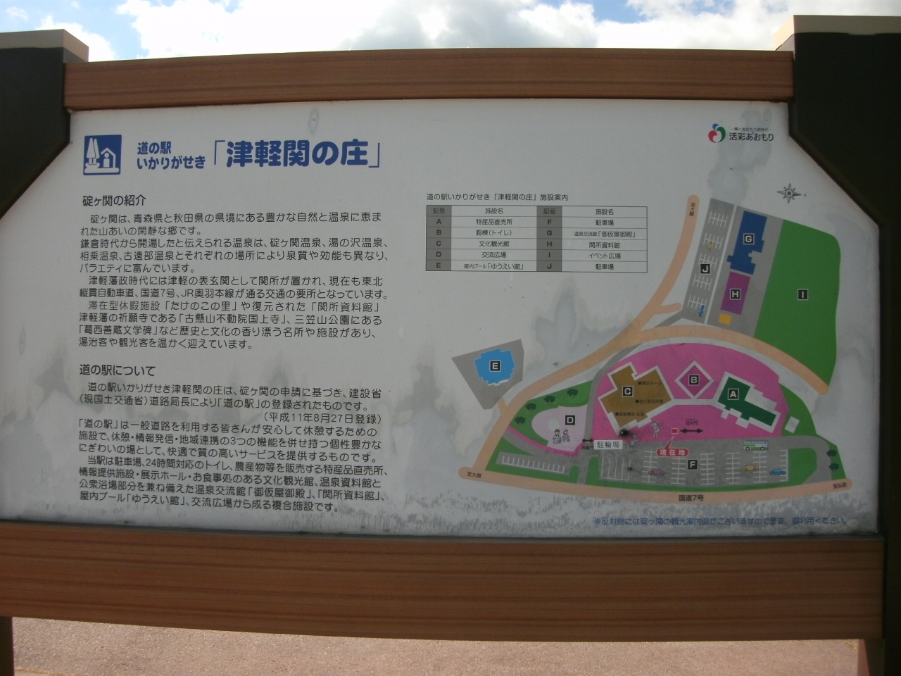大変大きな道の駅で、関所資料館や日帰り温泉施設もあり、文化観光館には観光案内所もあって碇ヶ関の資料展示や周辺観光パンフレット類も豊富にありました。産直品売り場では、リンゴが安く販売されているのが目につきました。- 旅行時期