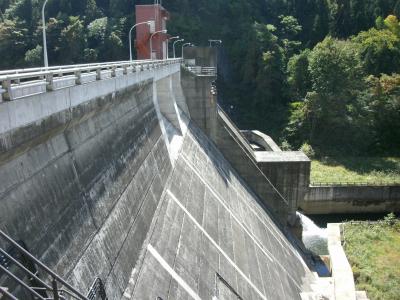 ダムは、非常用洪水吐やラジアルゲートの支持部など個性的な外観を見ることがでますが、ダムの堤上は閉鎖されていて歩けないのでダムにあまり関心ない人には面白くないかも。