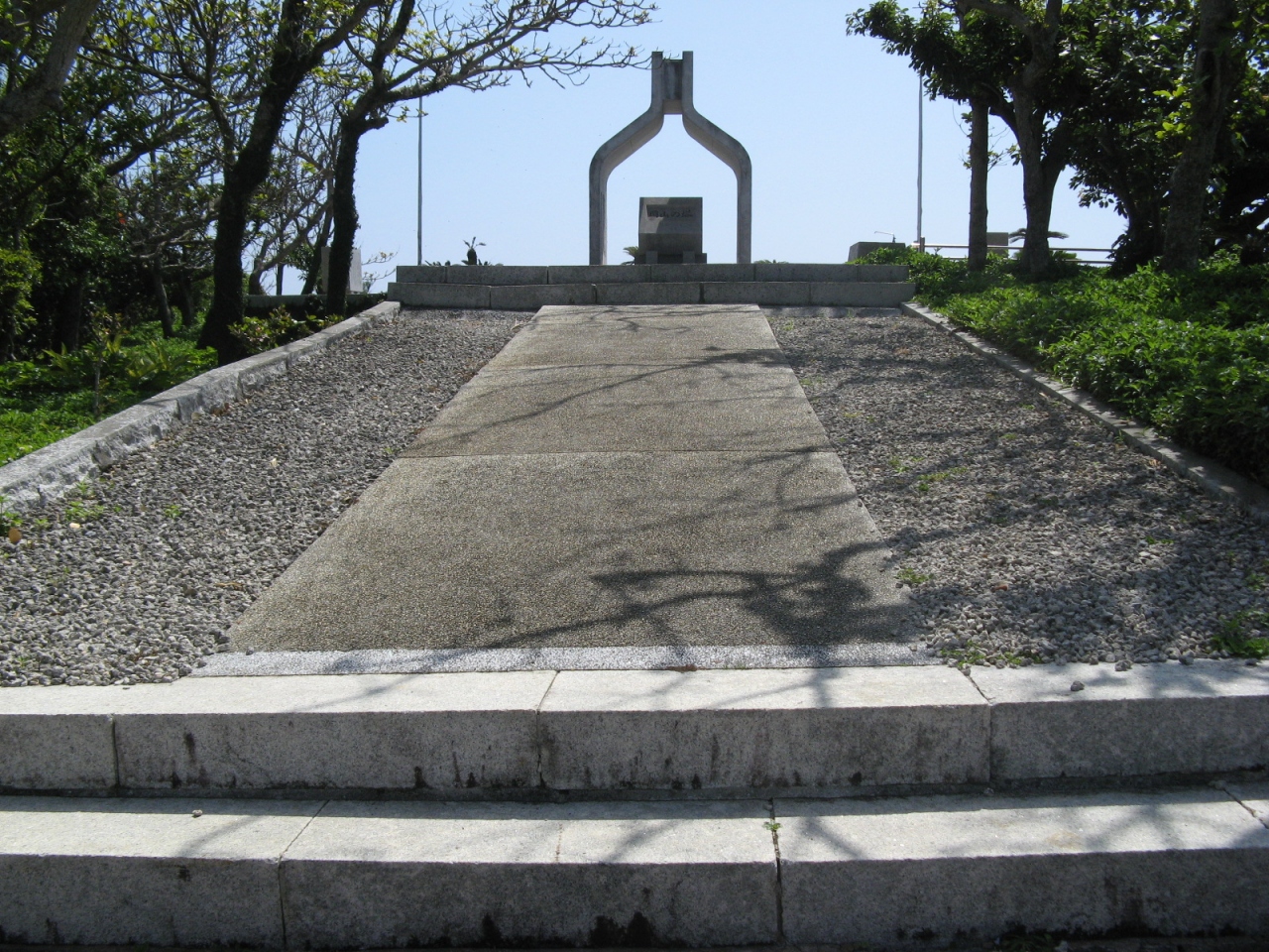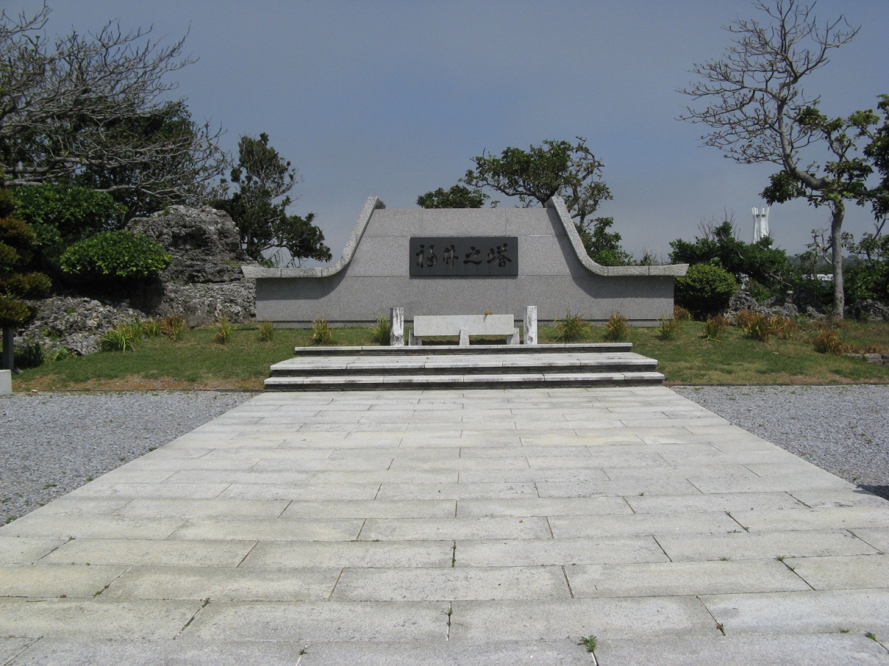 塔は沖縄の石造建築の代表的なひとつである園比屋武御嶽石門のようなデザインで、沖縄の風景に溶け込んだものになっています。