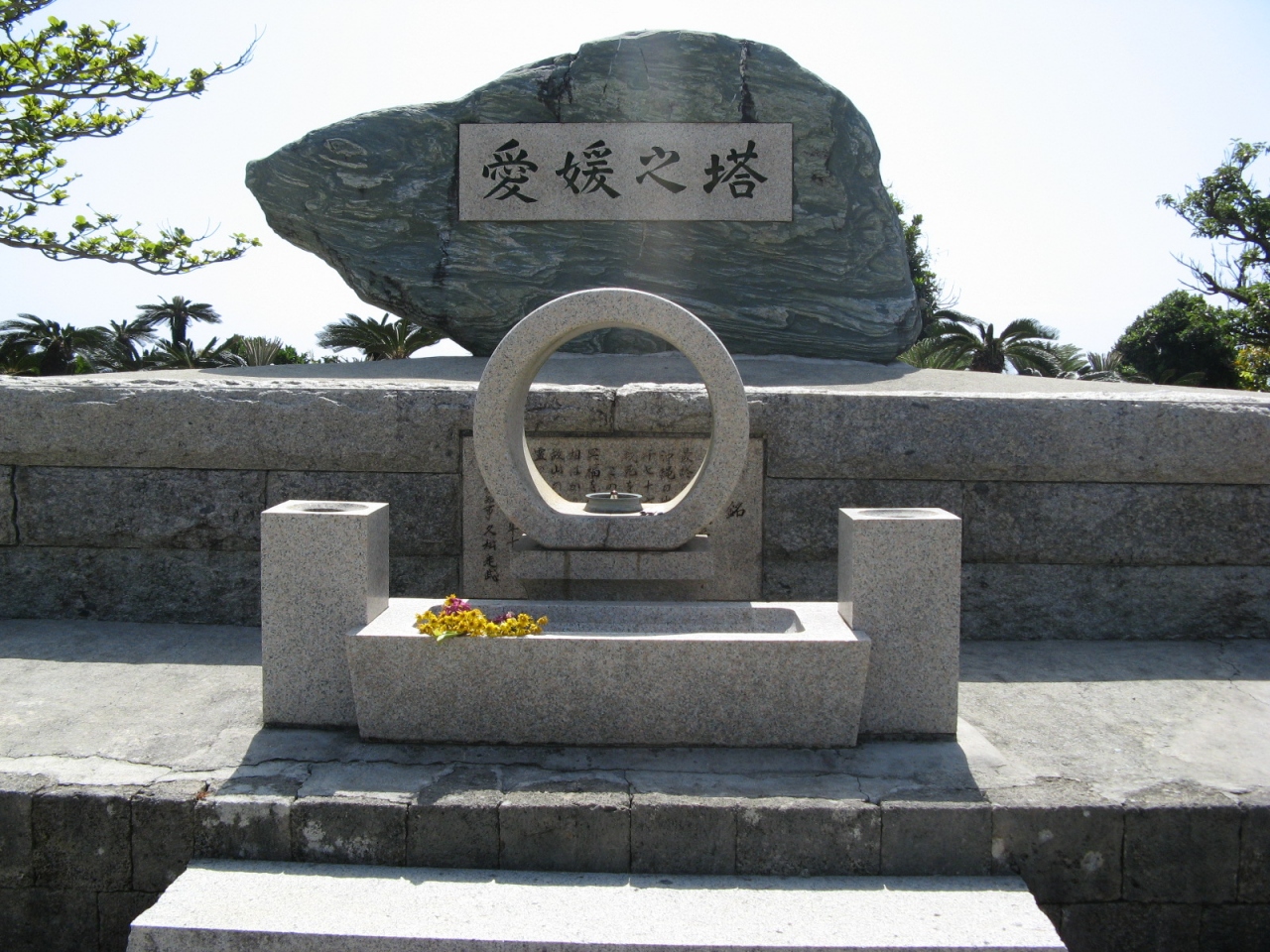 沖縄戦で戦没した愛媛県出身者2,076名をお祀りされています。塔石は愛媛県産の大きな青石を使ったシンプルな形になっています。