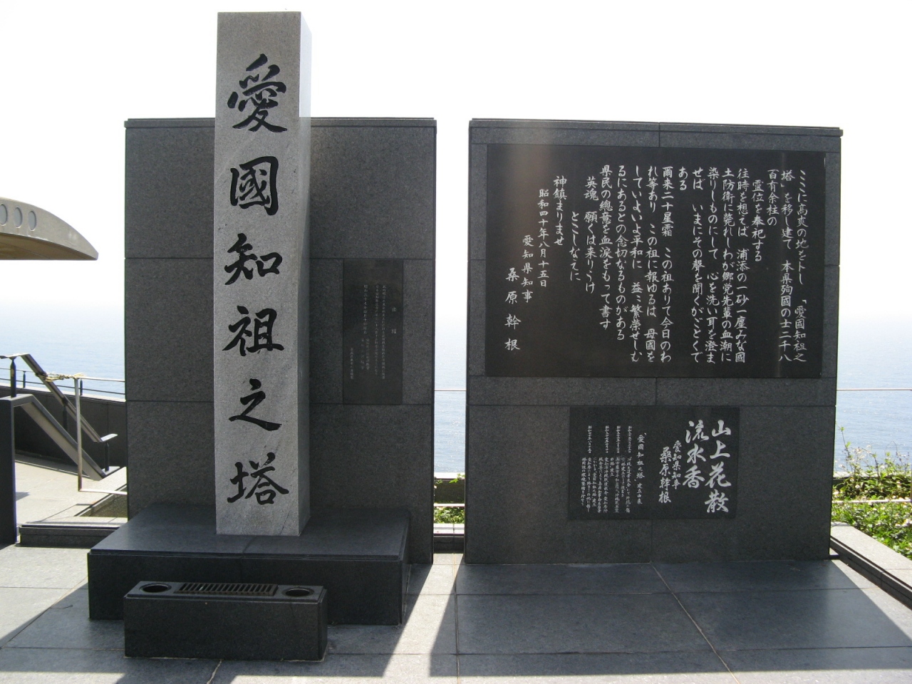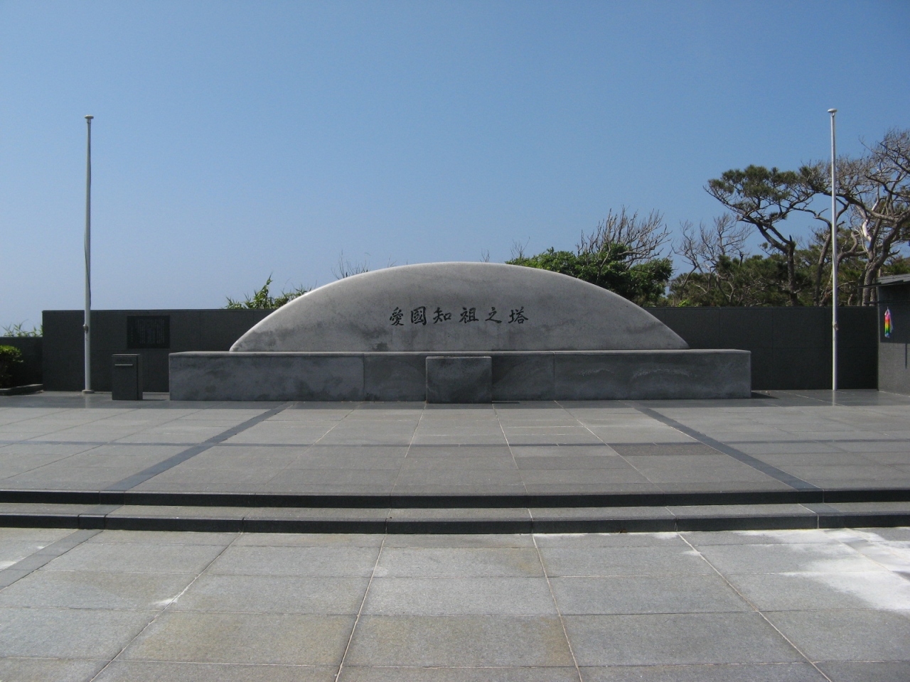 塔の丸型形状は平和を象徴するとともに、愛知県と沖縄県が共に面する太平洋をイメージしているそうで、「祖先を知り、国を愛す」との思いで「愛国知祖之塔」と命名されています。