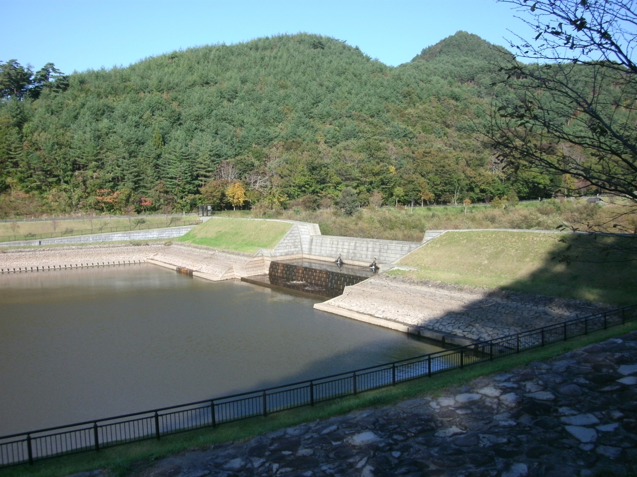 ダムといっても、高さが9m、堤頂長215mという、ダムらしくない異様に低い堤体のダムです。