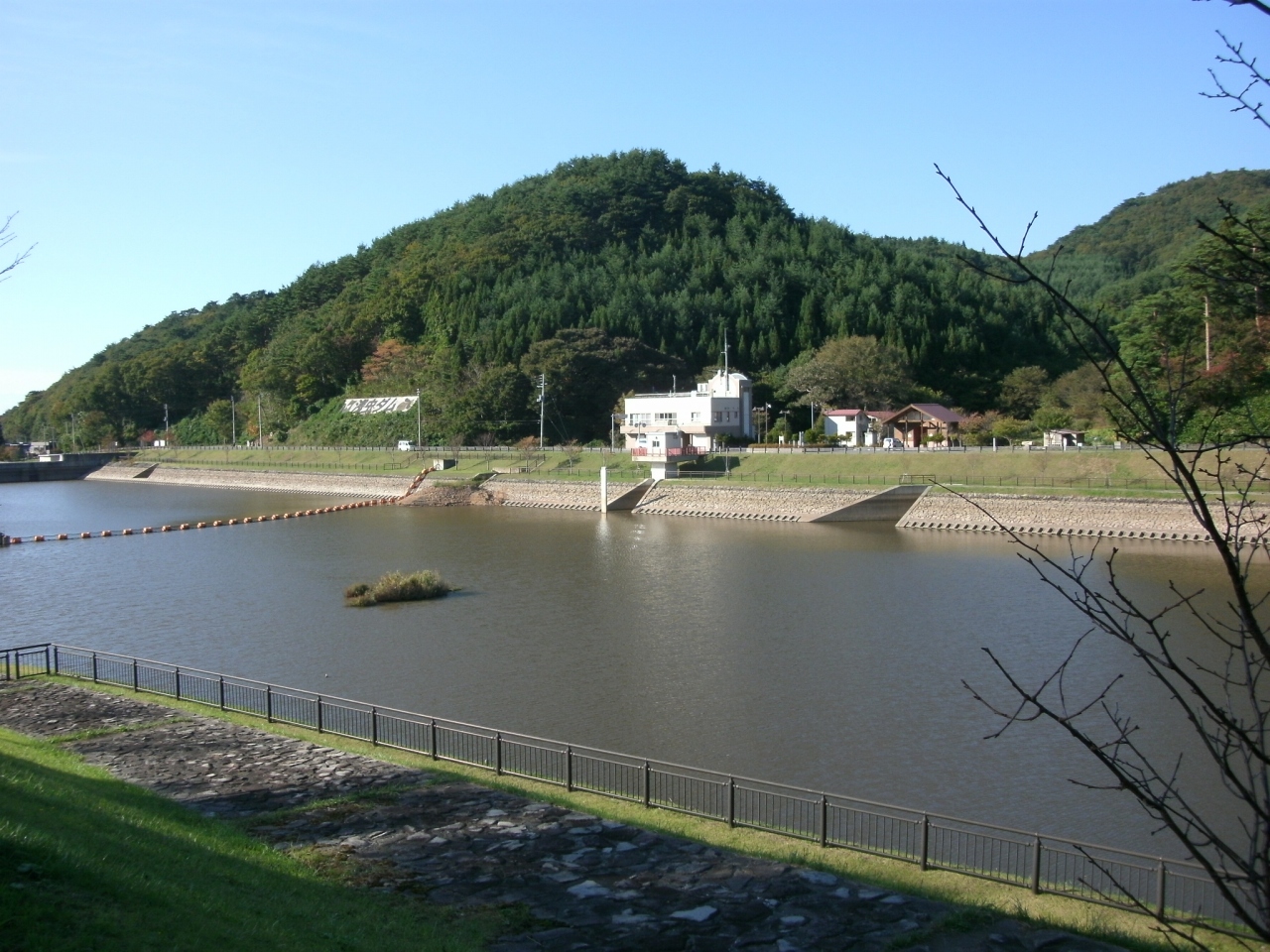 浅虫温泉街から1?ほどのところにあります。浅虫温泉の中心を流れる浅虫川に設けられたダムで、浅虫温泉を洪水から守る役目を果たしています。