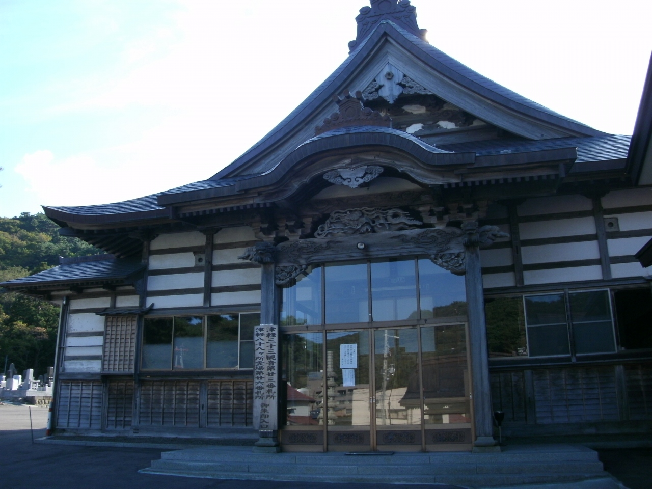浅虫温泉街のはずれにあります。平安時代に創建されたという古刹で、貞享4年(1684年)に悪性の眼疾に悩んでいた津軽四代目藩主津軽信政公がこの薬師堂に祈願したところ、快癒したことから代々津軽藩主の祈願所となったそうです。