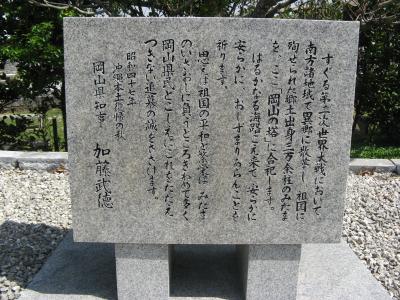 碑文には、『南溟にたとひこの身は果つるともいくとせのちの春をおもへば』という辞世の歌が刻まれていて、ふるさとを遠く離れて無念のうちに戦没された英霊の気持ちがわかります。