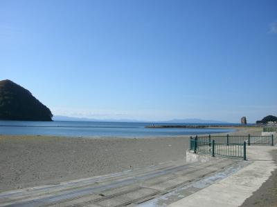 ビーチはそれほど広くはありませんが、両サイドを突堤で囲まれていて穏やかできれいな海です。目の前に浅虫温泉のシンボルである“湯の島”や少し遠くに“裸島”を眺めることが出来ました。青い森鉄道の浅虫温泉駅を越えるような形で架けられている人道橋(ゆうやけ橋)を渡ればすぐなので便利なロケーションにあります。無料駐車場があります。
