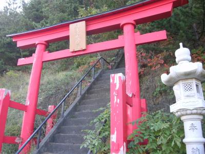 浅虫温泉から北の方向に国道4号線を走ってすぐ、左手に真っ赤な鳥居があるのに気づき参拝してみました。国道4号線を挟んで浅虫水族館の向かい辺りに鎮座されています。