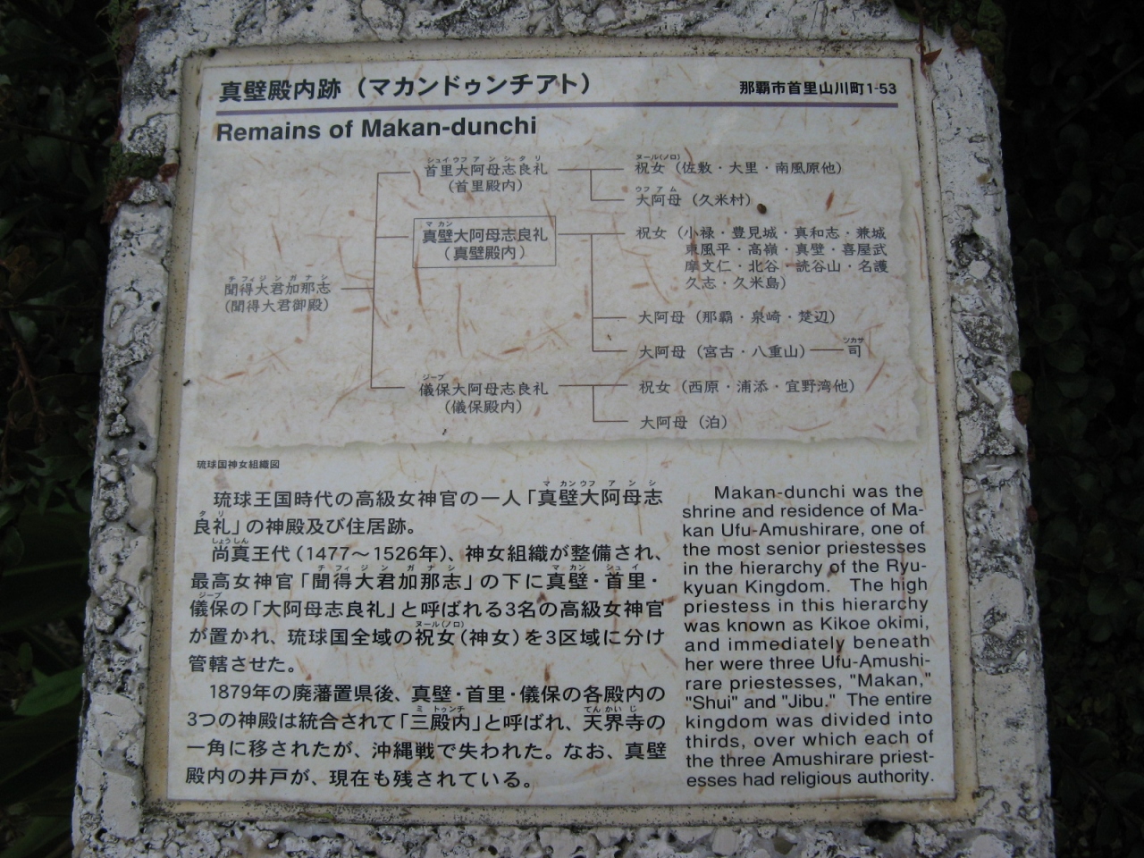 と言うことで、現在、この地は空き地になっていて遺構はなにも残っておらず、観るものはありませんが、説明板を見てたった3人の女神官が琉球全体にわたって重要な役割を果たしていたことに驚きました。
