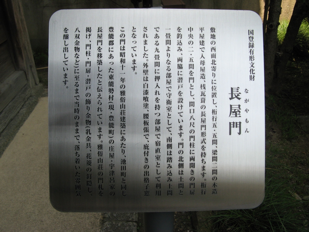 今から200年以上も前に建てられた母屋は、茅葺、寄棟作りの間口が17間(33メートル)もある大きなもので、作業部屋や台所、寝室、座敷などがあって華美ではないが太い梁、高い天井など豪壮なもので当時の豪農の生活を知ることができました。母屋と表門は国の重要文化財に指定されています。