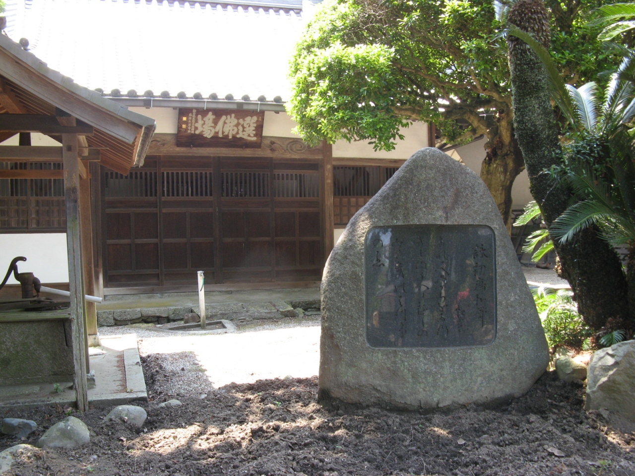 本堂の裏の山の斜面の下に「五輪塔」があります。現地にある説明板には、『高さ1.8mの花崗岩製。地輪に、「元亨辛酉(1321年)七月十五日 金剛仏子定盛」と、銘が刻まれていて、時代が明確なこと、形が完全なことから、大阪府の指定文化財となっている。』と言う意味の説明があります。詳細は説明板の写真を添付しますので参照ください。
